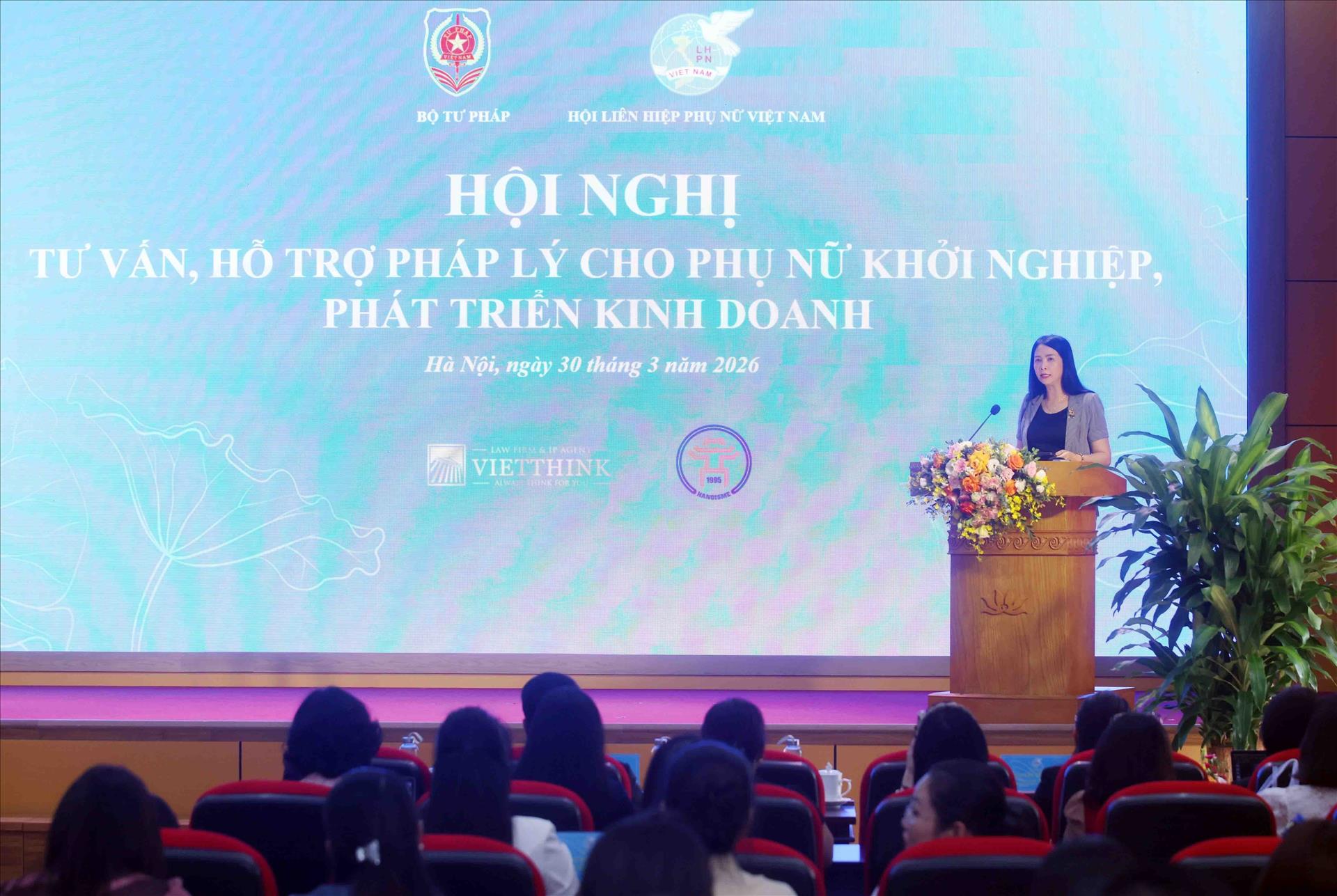 Chiều 30/3, tại Hà Nội, Trung ương Hội Liên hiệp Phụ nữ Việt Nam phối hợp với Bộ Tư pháp tổ chức Hội nghị tập huấn "Tư vấn, hỗ trợ pháp lý cho phụ nữ khởi nghiệp, phát triển kinh doanh", nhằm góp phần nâng cao chất lượng, hiệu quả hỗ trợ phụ nữ phát triển kinh tế trong giai đoạn mới. Hội nghị được kết nối trực tiếp và trực tuyến tới 34 tỉnh, thành phố cùng hàng nghìn điểm cầu trên cả nước, thu hút đông đảo nữ doanh nhân, phụ nữ khởi nghiệp, đại diện doanh nghiệp nhỏ và vừa, hợp tác xã, hộ kinh doanh tham dự.
