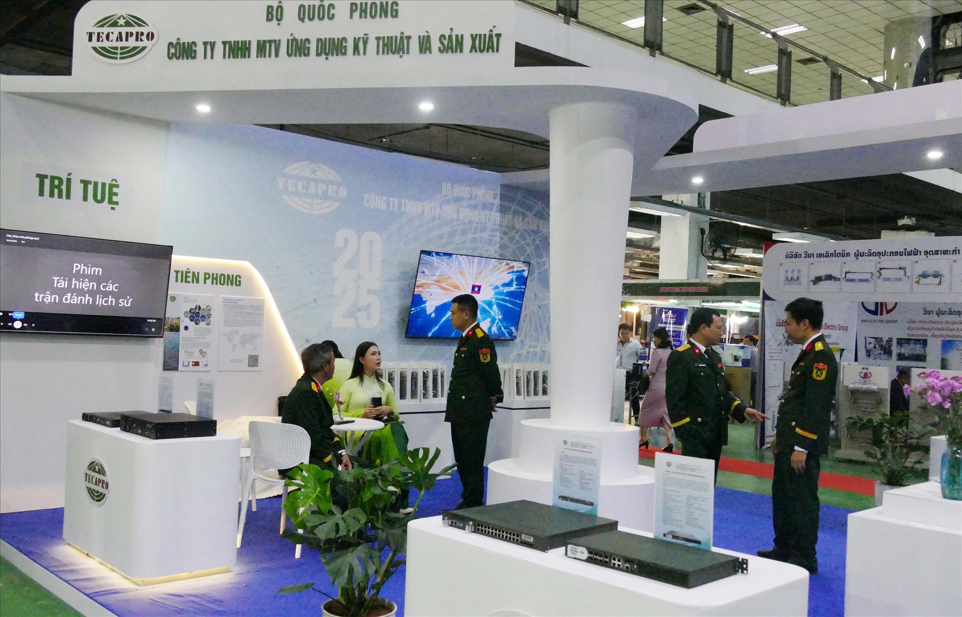 Một gian hàng quân đội của Việt Nam tham gia Hội chợ. Ảnh: Xuân Tú - PV TTXVN tại Lào