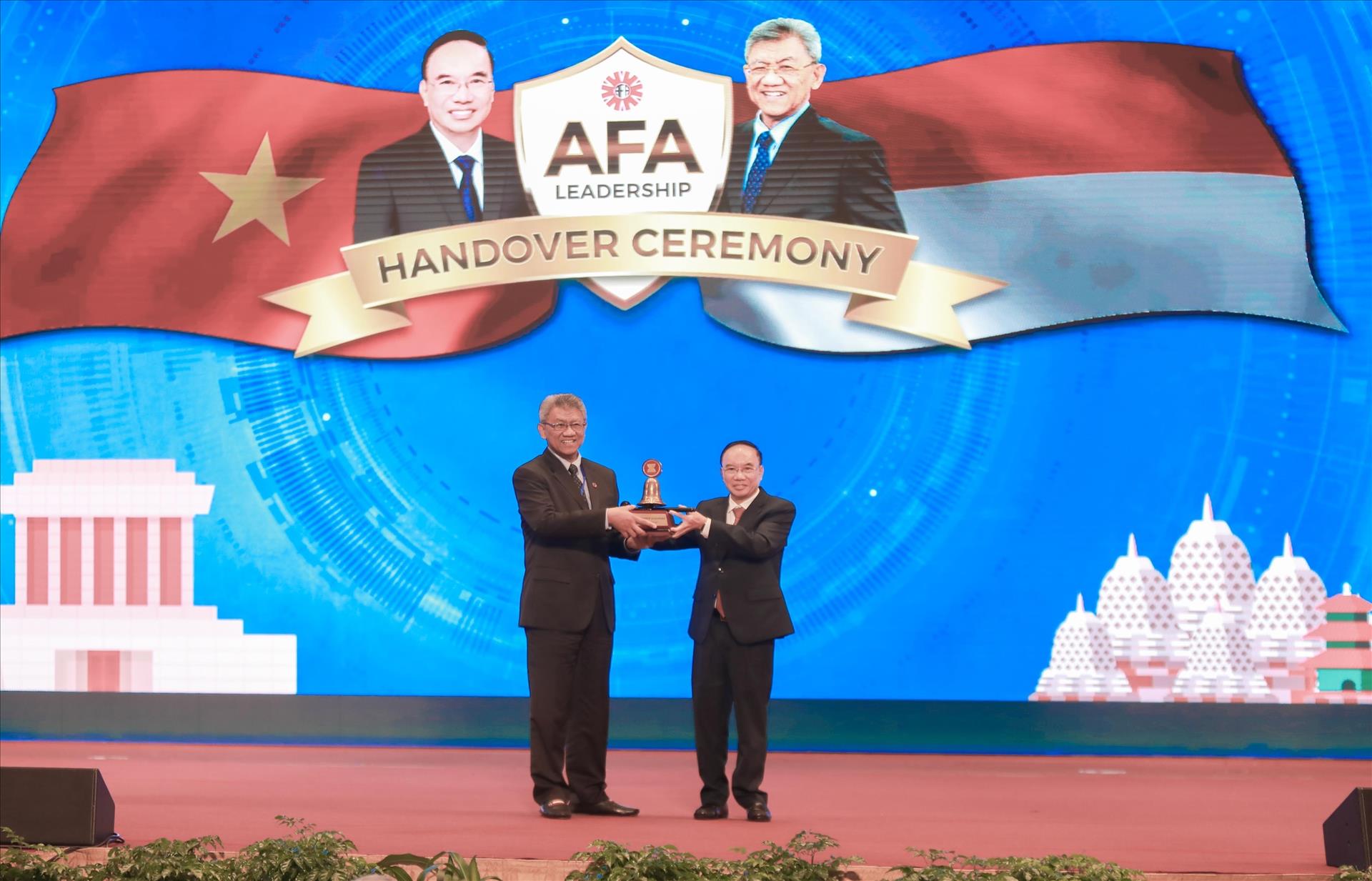 Lễ bàn giao Chủ tịch AFA từ Việt Nam sang Indonesia nhiệm kỳ 2026 - 2027. Ảnh. Phan Phương – TTXVN