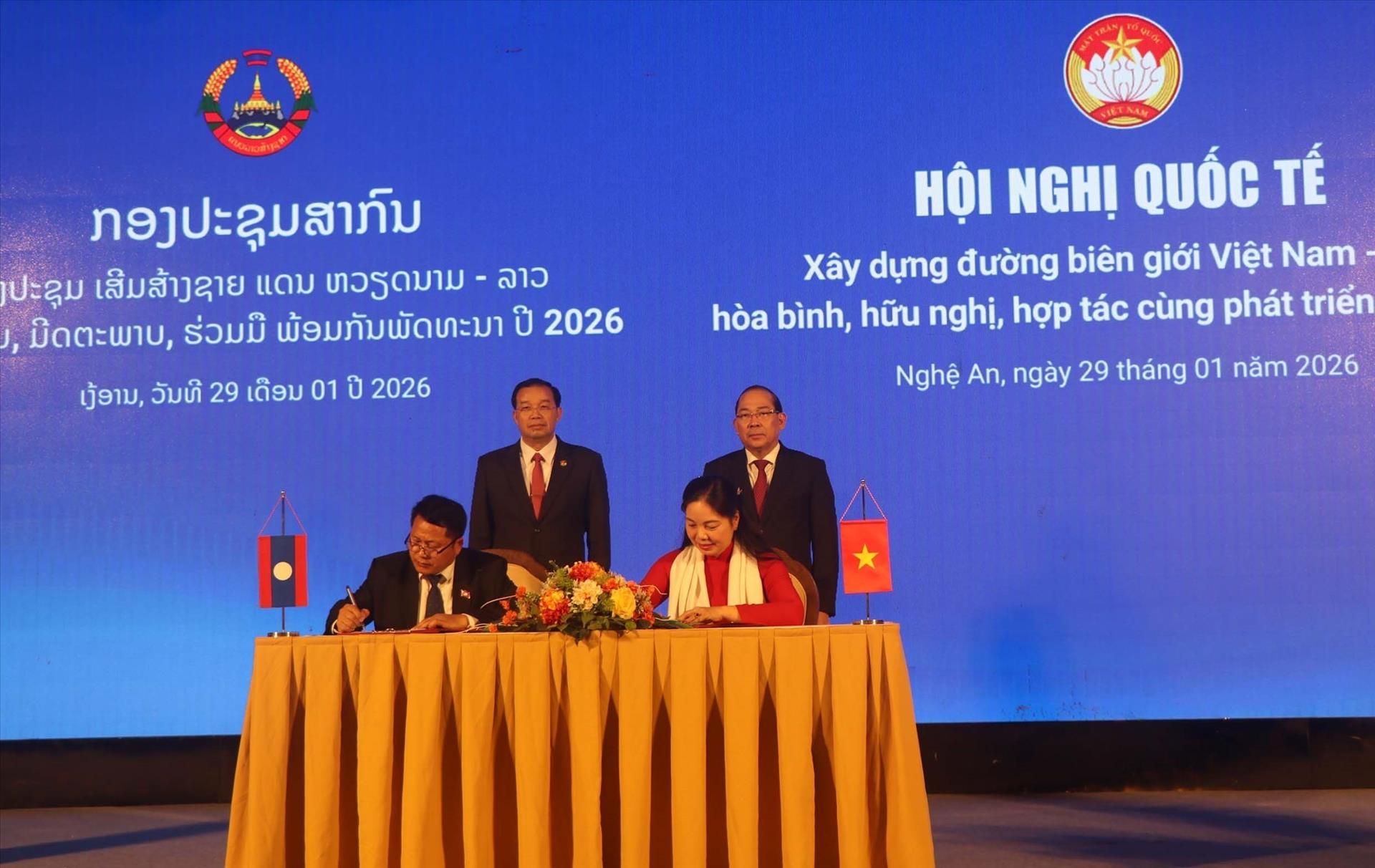 Chiều 29/1, tại tỉnh Nghệ An, Ủy ban Trung ương Mặt trận Tổ quốc Việt Nam và Ủy ban Trung ương Mặt trận Lào xây dựng đất nước phối hợp tổ chức Hội nghị quốc tế xây dựng đường biên giới Việt Nam - Lào hòa bình, hữu nghị, hợp tác cùng phát triển năm 2026.