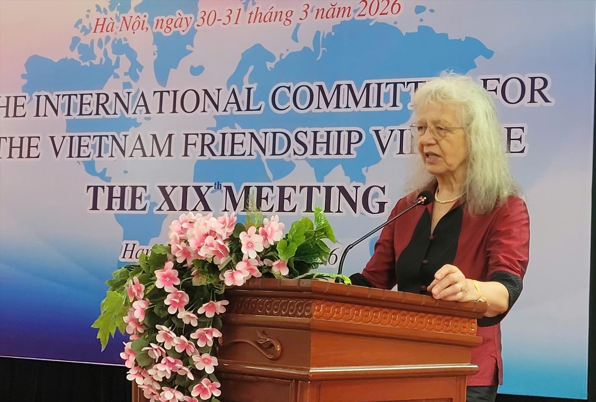 Bà Rosi Hohn Mizo, Chủ tịch Ủy ban Quốc tế về Làng Hữu nghị Việt Nam phát biểu. Ảnh: Phương Thanh-TTXVN