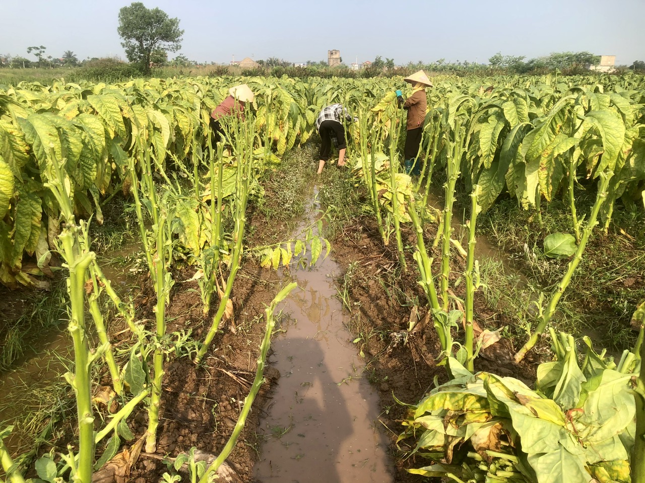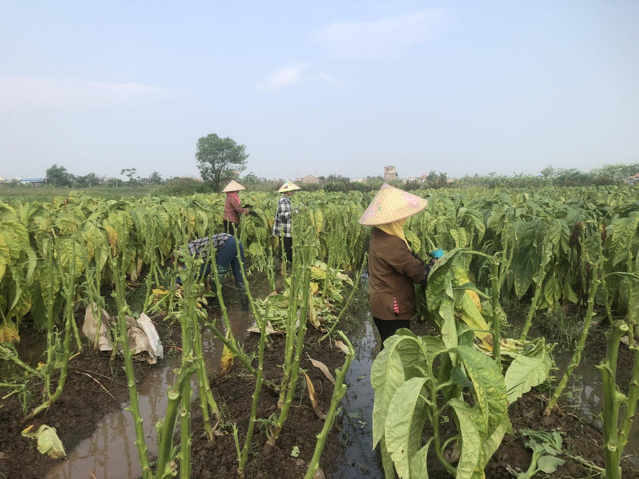 Người dân xã Đông Thụy Anh thu hái thuốc lào.