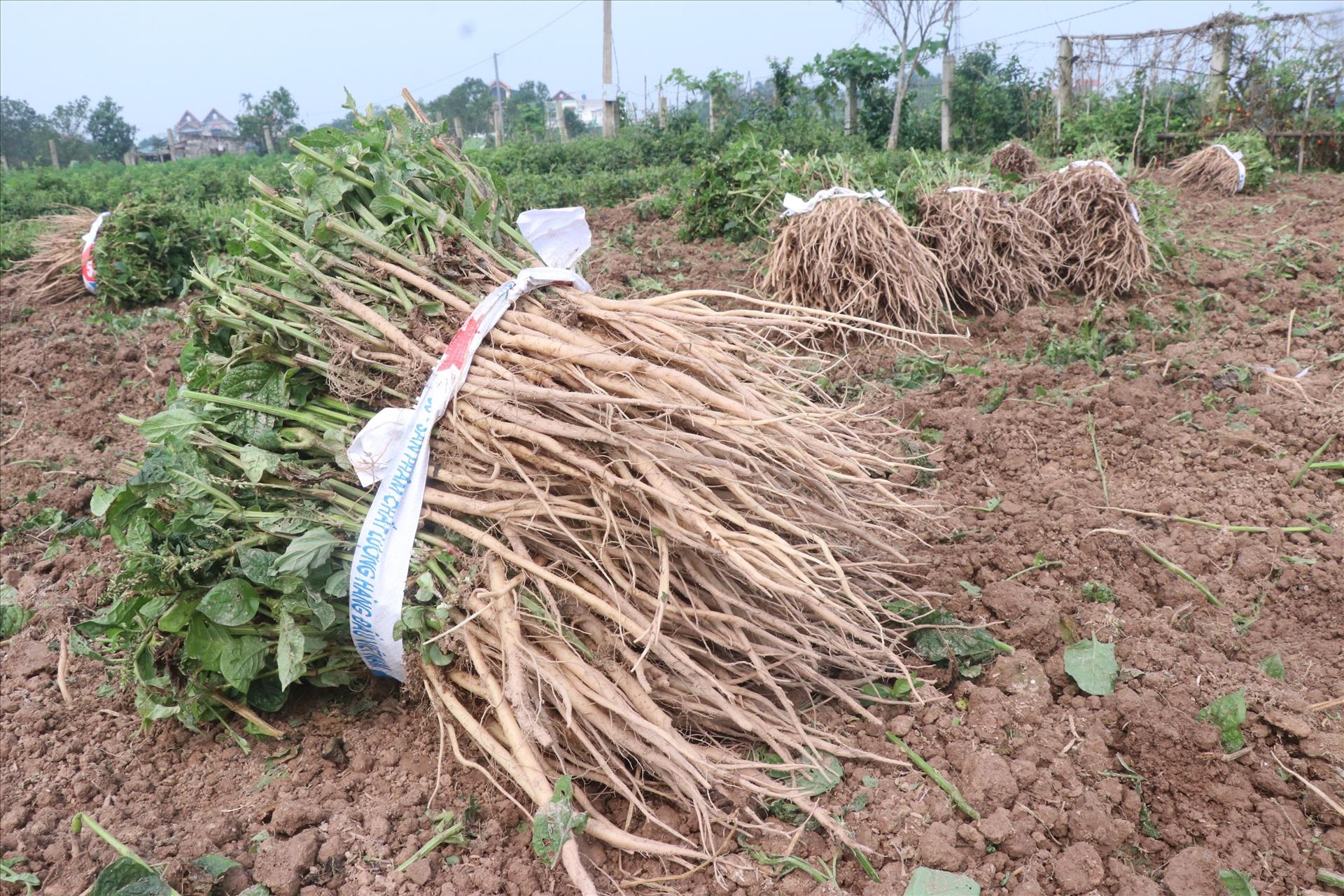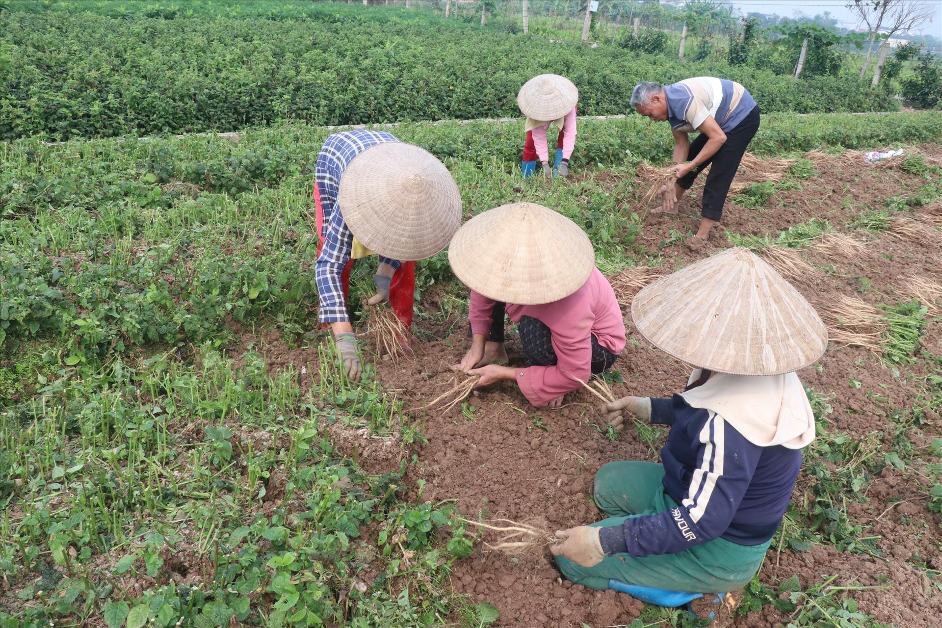 Cuối tháng giêng và đầu tháng hai âm lịch hàng năm, người dân xã Hưng Hà, tỉnh Hưng Yên, sẽ thu hoạch ngưu tất. Ảnh: Đinh Văn Nhiều/TTXVN
