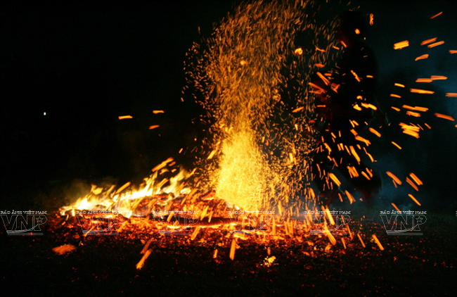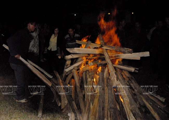 Đống củi sẽ được đốt cháy trong suốt quá trình thầy mo làm lễ.
