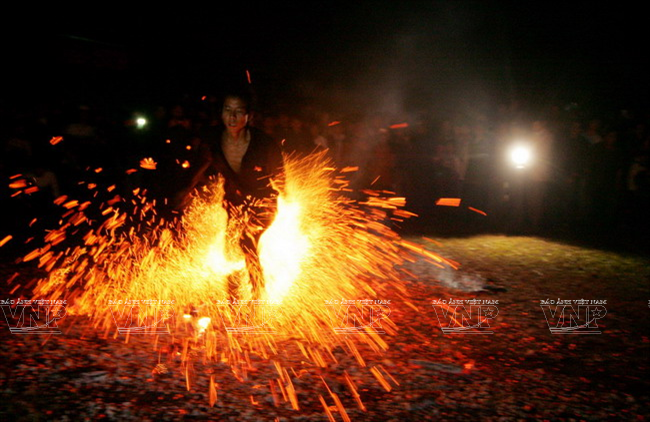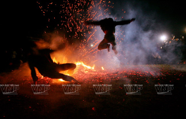 Những người đã nhập đồng sẽ nhảy vào đám lửa dẫm đạp lên than hồng đang rừng rực cháy.