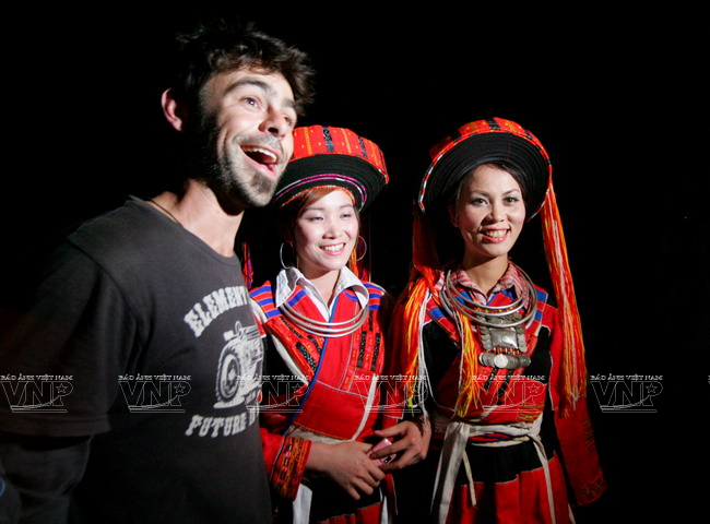 Du khách nước ngoài thích thú với lễ hội nhảy lửa của người Pà Thẻn. |