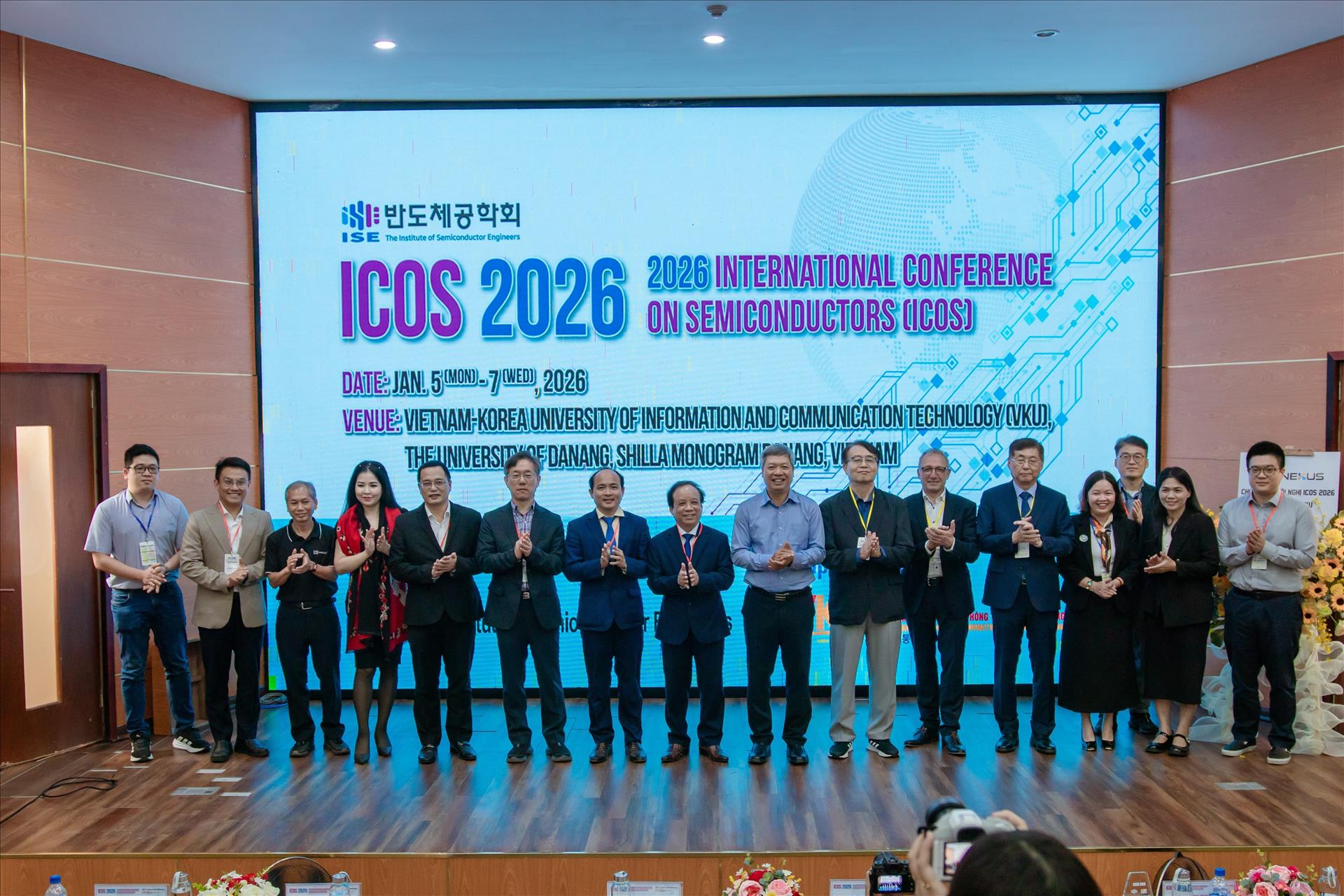 Hội thảo quốc tế về bán dẫn ICOS 2026 (International Conference on Semiconductors 2026) diễn ra từ ngày 5–7/1 tại Đà Nẵng. Sự kiện do Trường Đại học Công nghệ Thông tin và Truyền thông Việt – Hàn (VKU) (Đại học Đà Nẵng) đăng cai tổ chức, phối hợp cùng Hiệp hội Kỹ sư Bán dẫn Hàn Quốc (ISE), quy tụ khoảng 300 nhà khoa học, chuyên gia, giảng viên, nhà nghiên cứu và đại diện doanh nghiệp trong lĩnh vực vi mạch bán dẫn, điện tử và các hệ thống thông minh.