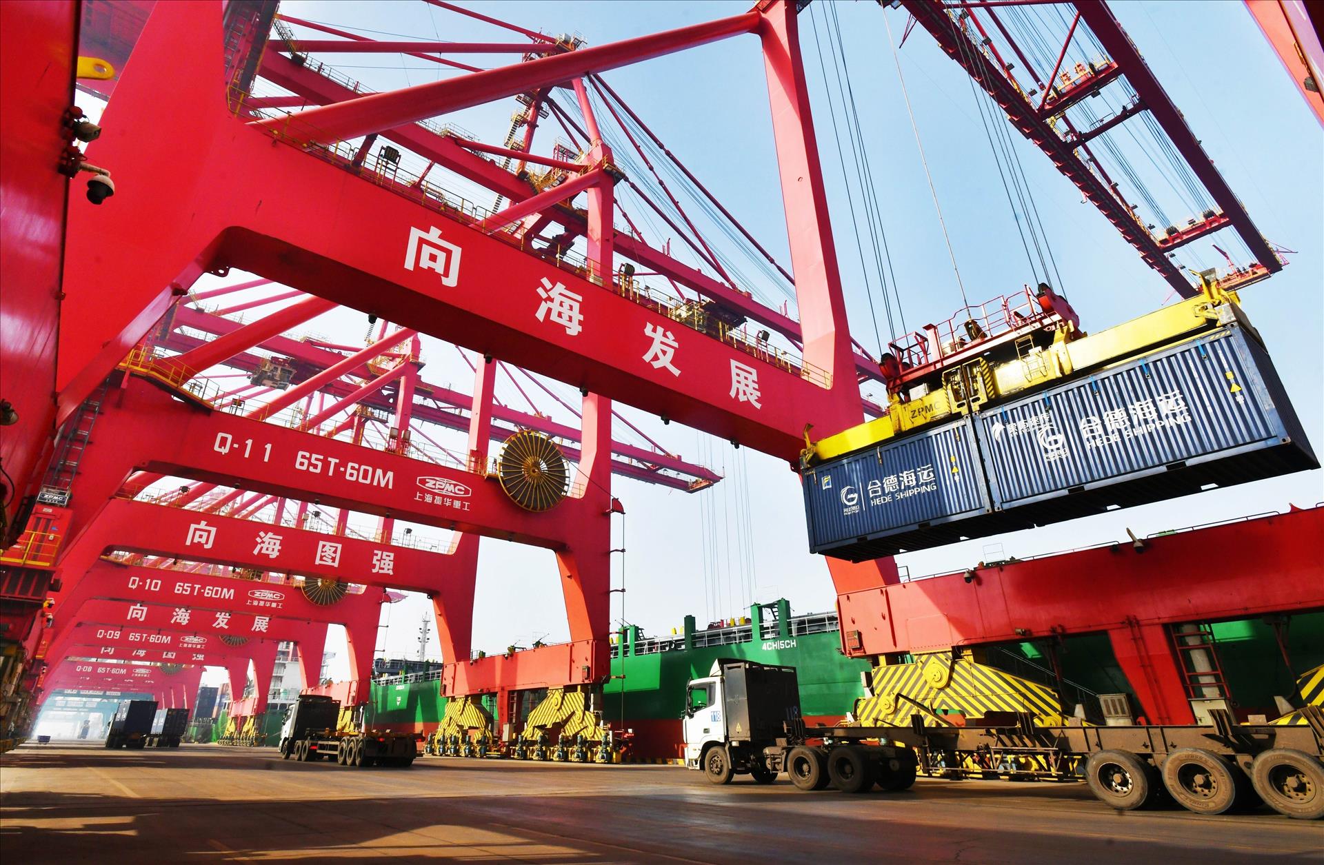 Quang cảnh cảng hàng hoá tại tỉnh Giang Tô, Trung Quốc. Ảnh: THX/TTXVN