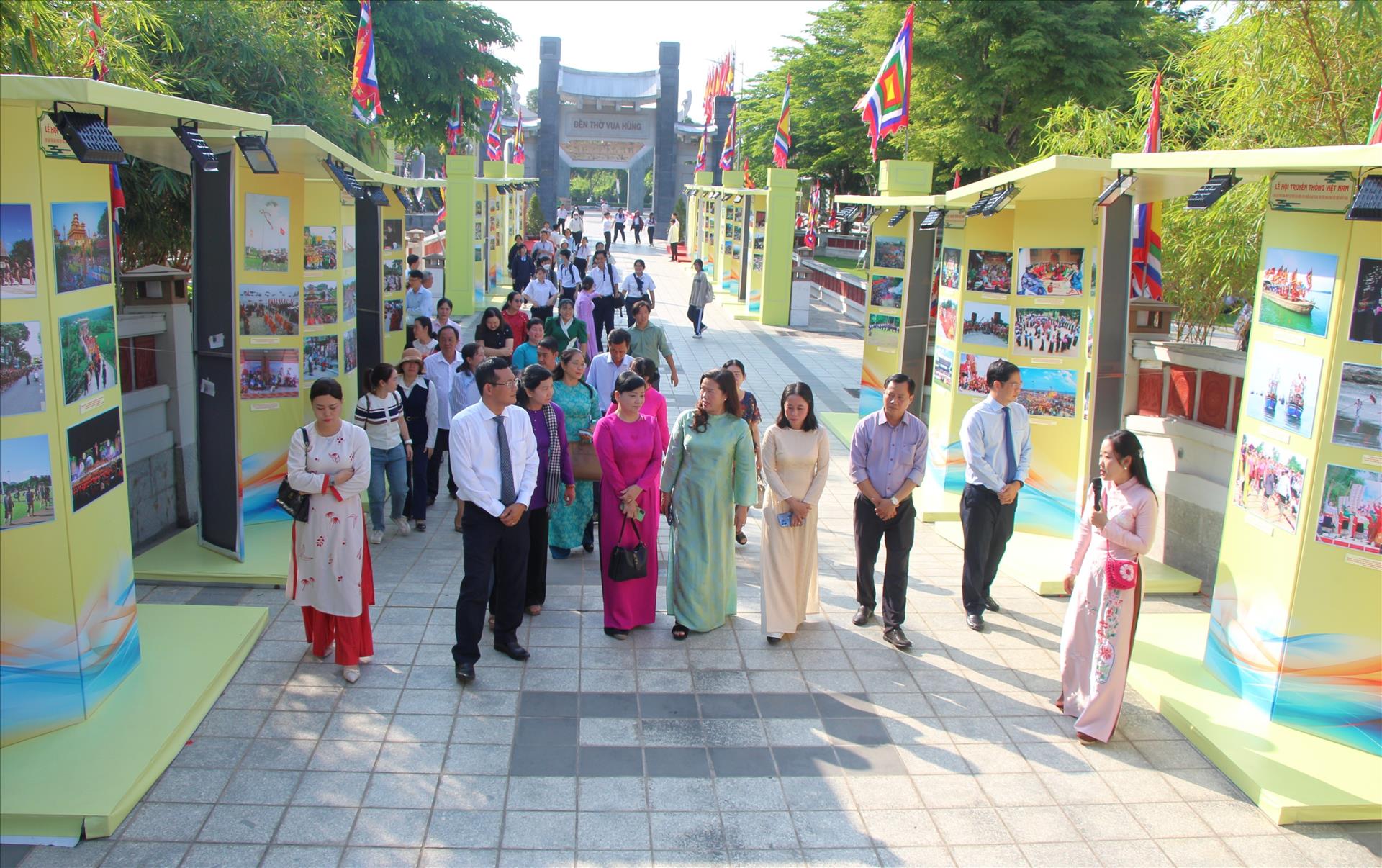 Tại Đền thờ Vua Hùng cũng đang trưng bày hơn 500 tư liệu, hình ảnh, hiện vật trong các chuyên đề: “Văn hóa Đông Sơn và thời đại Hùng Vương”, “Đồng bằng sông Cửu Long hướng về Đất Tổ”, “Sưu tập đồ đồng Văn hóa Đông Sơn”.