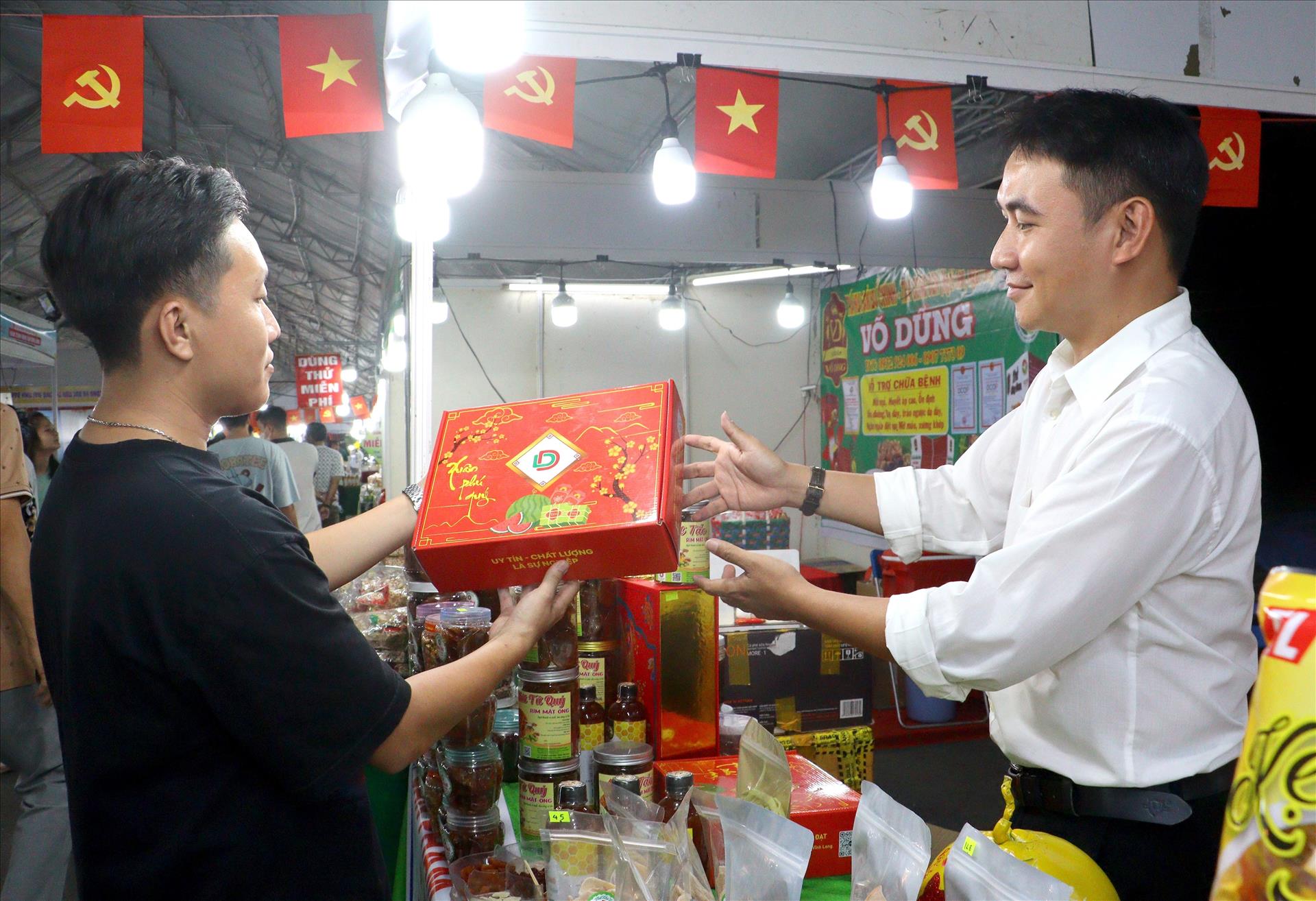 Người dân mua sắm sản phẩm OCOP tại Hội chợ Xúc tiến Thương mại và Du lịch tỉnh Vĩnh Long. Ảnh: Lê Thúy Hằng – TTXVN