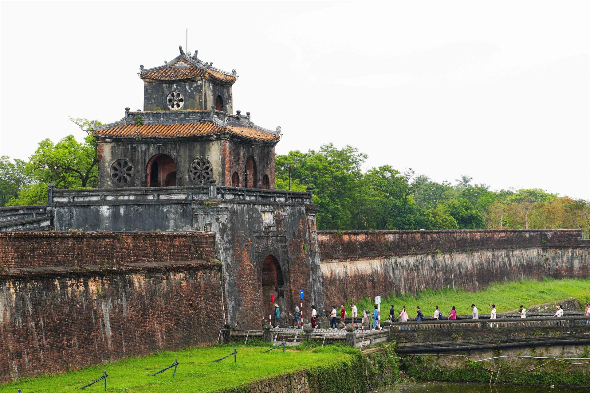 Đoàn du khách vào tham quan Kinh thành Huế từ Cửa Ngăn. Ảnh: Nguyên Lý-TTXVN