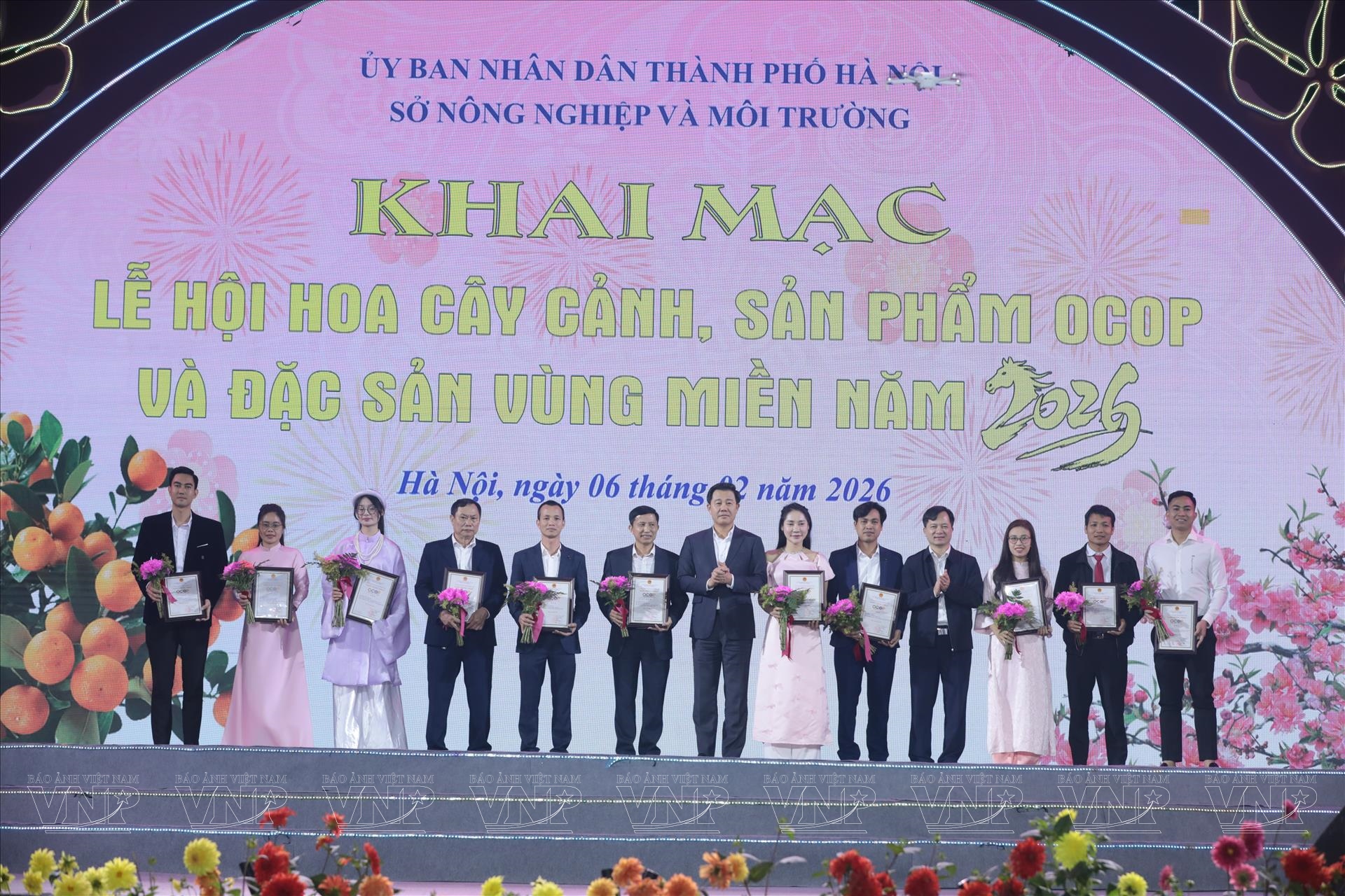 Lễ hội Hoa cây cảnh, sản phẩm OCOP và đặc sản vùng miền năm 2026 được tổ chức với quy mô hơn 7.000m², thu hút trên 150 đơn vị tham gia đến từ Hà Nội và 22 tỉnh, thành phố trong cả nước, trưng bày hàng nghìn sản phẩm OCOP, đặc sản vùng miền. Ảnh: Công Đạt/Báo ảnh Việt Nam