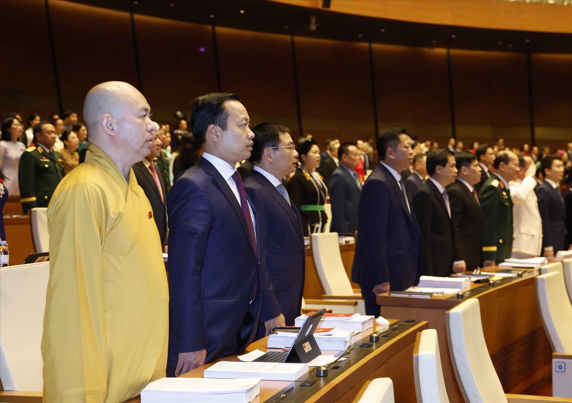 Nhân dịp này, thay mặt các đại biểu Quốc hội mới trúng cử, Chủ tịch Quốc hội bày tỏ sự tri ân sâu sắc đến cử tri và nhân dân cả nước, các đồng chí lãnh đạo, nguyên lãnh đạo Đảng, Nhà nước, Mặt trận Tổ quốc Việt Nam và các đại biểu Quốc hội tiền nhiệm, đặc biệt là lãnh đạo Quốc hội và các đại biểu Quốc hội khóa XV đã để lại nhiều dấu ấn quan trọng. Trong bối cảnh đất nước đối mặt với rất nhiều khó khăn, thách thức, nhưng Quốc hội đã không ngừng nỗ lực, có nhiều đổi mới đột phá; đổi mới tư duy trong xây dựng pháp luật; đẩy mạnh ứng dụng khoa học công nghệ, đổi mới sáng tạo, Quốc hội số, trí tuệ nhân tạo; khẳng định vai trò "đi trước một bước về thể chế", kịp thời tháo gỡ những điểm nghẽn, khơi thông mọi nguồn lực cho phát triển; tăng cường hiệu quả hoạt động giám sát tối cao, quyết định vấn đề quan trọng của đất nước và ngoại giao Nghị viện.