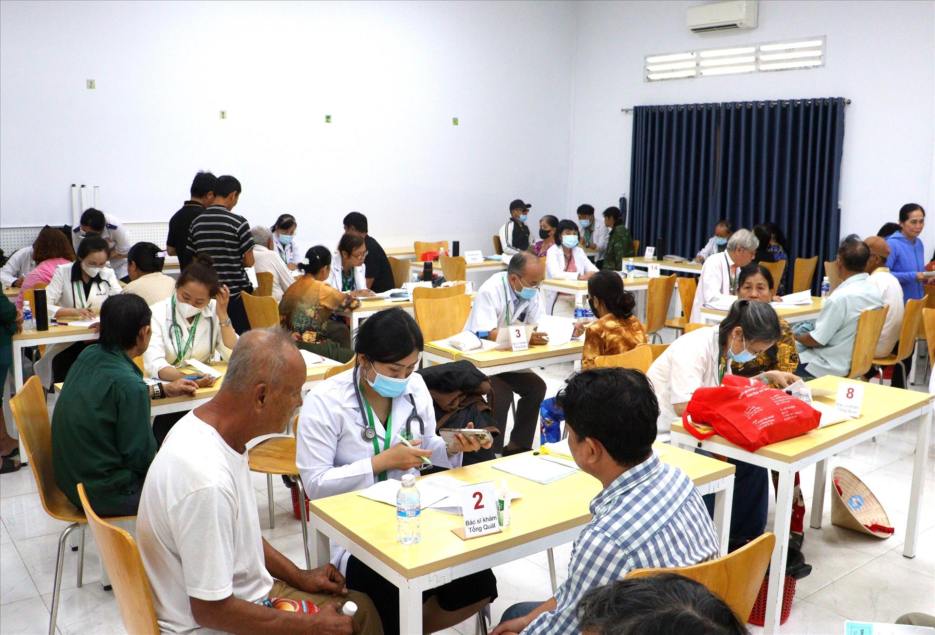 Người dân đến khám bệnh miễn phí tại Trường Đại học Cửu Long. Ảnh: Lê Thúy Hằng – TTXVN