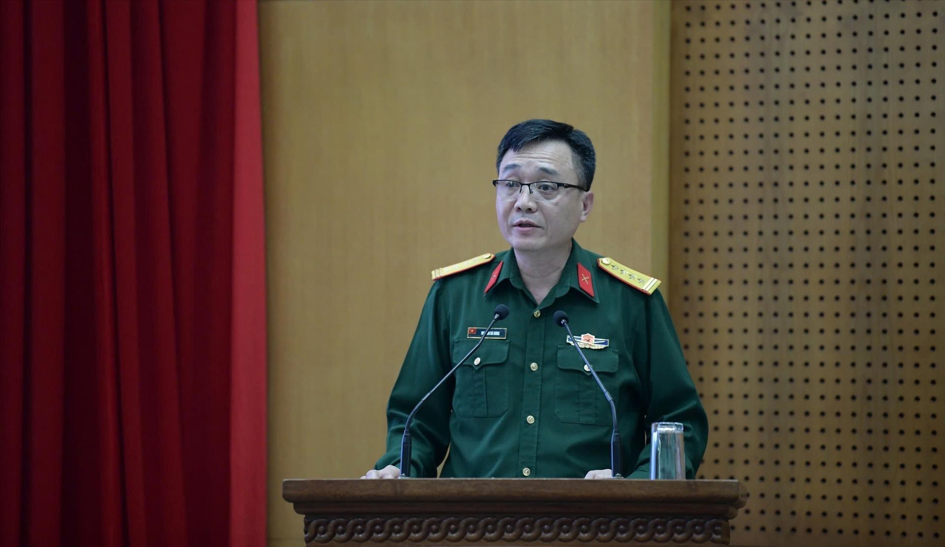 Đại tá Nguyễn Bá Hưng, Phó Cục trưởng Cục Gìn giữ hòa bình Việt Nam (Bộ Quốc phòng) phát biểu khai mạc. Ảnh: Hiền Hạnh - TTXVN