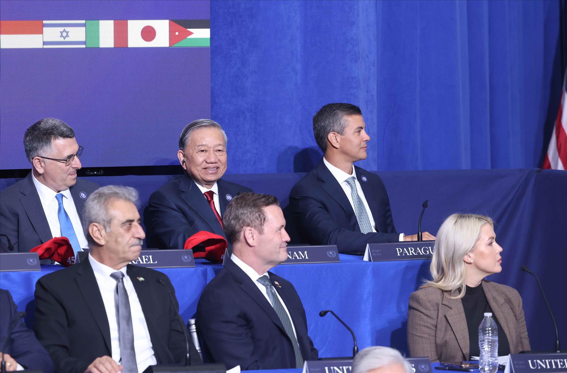 Là một trong những thành viên sáng lập Hội đồng Hòa bình về Gaza, Việt Nam đã thể hiện rõ lập trường nhất quán: mọi tranh chấp và xung đột phải được giải quyết bằng biện pháp hòa bình, trên cơ sở luật pháp quốc tế và Hiến chương Liên hợp quốc, tôn trọng các quyền cơ bản và lợi ích chính đáng của các bên liên quan. Tại cuộc họp, Tổng Bí thư Tô Lâm nhấn mạnh mong muốn của Việt Nam phối hợp chặt chẽ với các thành viên để chấm dứt xung đột, bảo vệ dân thường, đảm bảo tiếp cận nhân đạo, tái thiết cơ sở hạ tầng tại Dải Gaza và thúc đẩy tiến trình chính trị đáng tin cậy nhằm hướng tới một nền hòa bình lâu dài và bền vững tại khu vực Trung Đông. Chuyến công tác của Tổng Bí thư Tô Lâm đã thể hiện cam kết mạnh mẽ của Việt Nam với các nỗ lực hòa bình quốc tế nói chung, cũng như thiện chí và nỗ lực đóng góp của Việt Nam vào việc thúc đẩy hòa bình ở khu vực Trung Đông và đảm bảo các quyền dân tộc cơ bản của nhân dân Palestine, trong đó có quyền thành lập một Nhà nước Palestine.