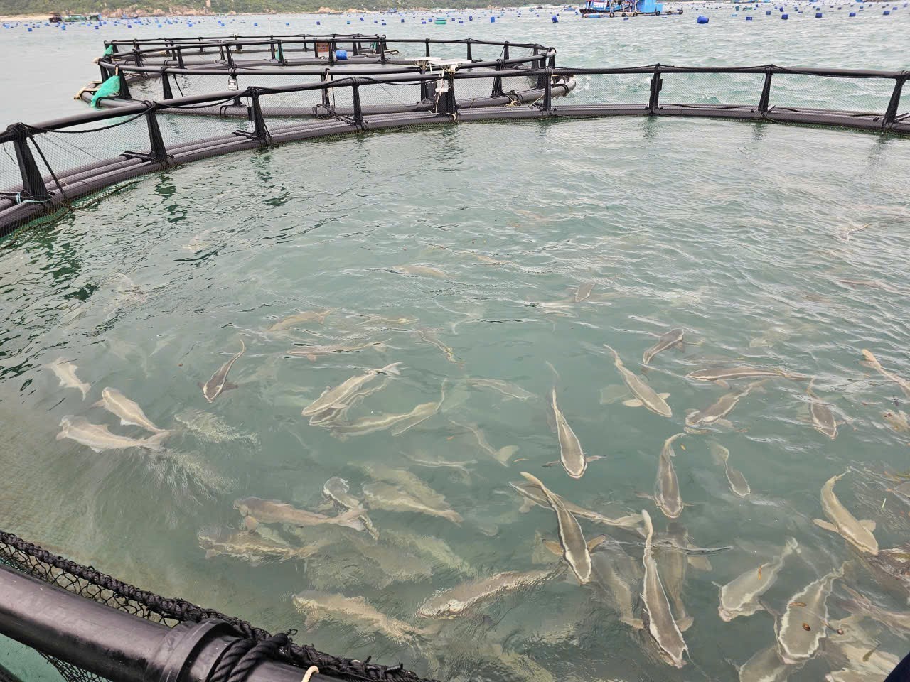 Nuôi cá biển bằng lồng HDPE tại tỉnh Khánh Hòa là giải pháp công nghệ mang lại hiệu quả cao. Ảnh: TTXVN phát