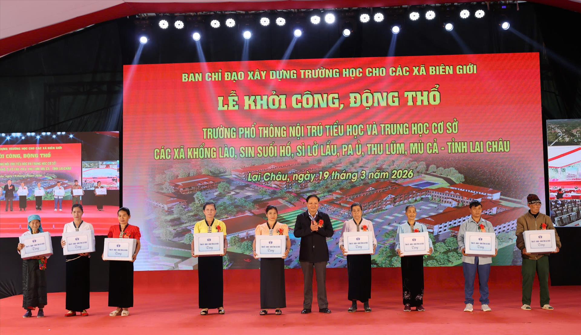 Cùng với đại biểu 17 điểm cầu tại 17 tỉnh, thành phố trong cả nước, tại buổi Lễ, các đồng chí lãnh đạo tỉnh Lai Châu, các đại biểu đã thực hiện nghi thức động thổ Khởi công các dự án đầu tư xây dựng Trường Phổ thông nội trú Tiểu học và Trung học cơ sở các xã Khổng Lào, Sin Suối Hồ, Sì Lở Lầu, Thu Lũm, Pa Ủ, Mù Cả.