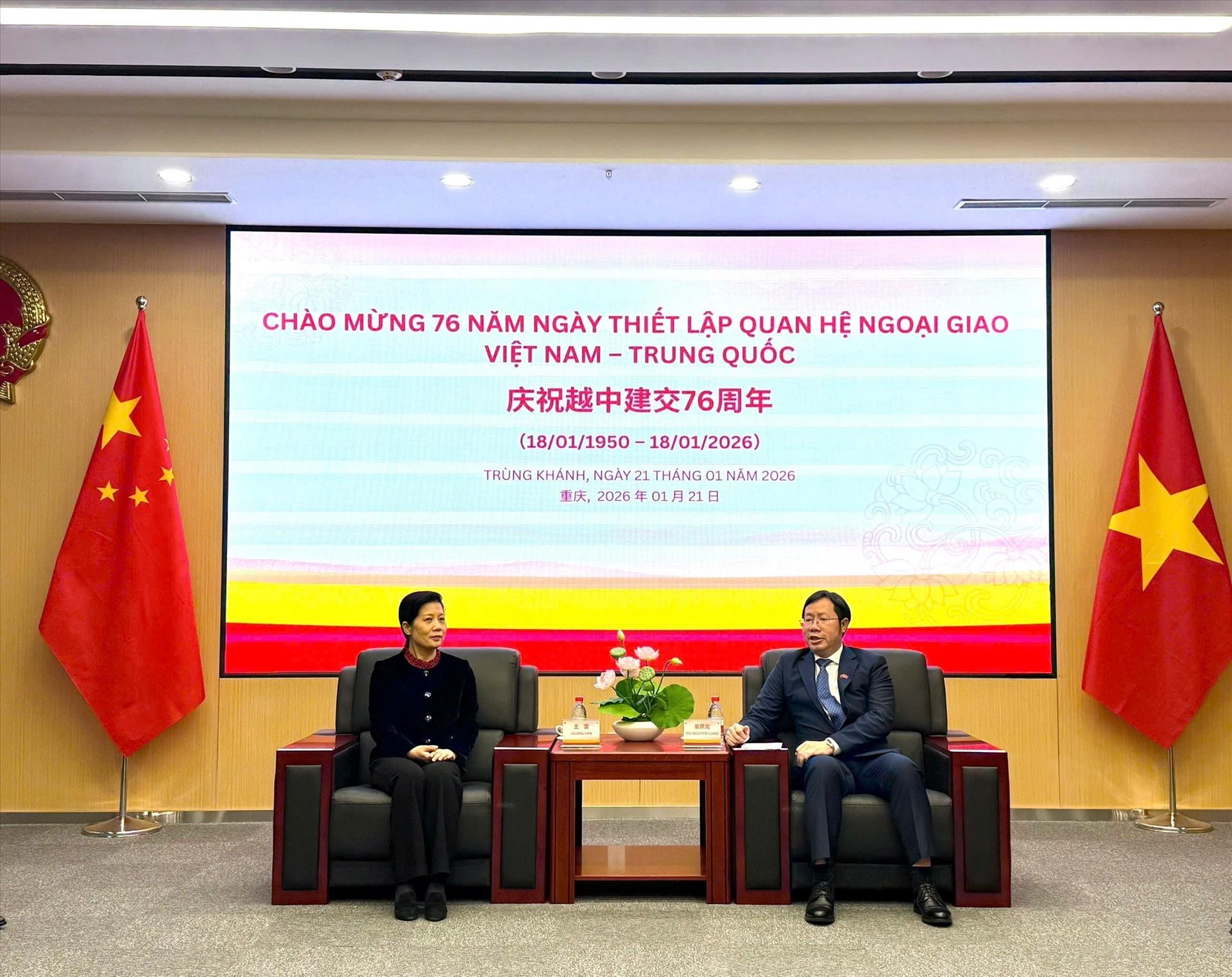 Tổng Lãnh sự Bùi Nguyên Long cho biết thời gian qua, hợp tác giữa Việt Nam và Trùng Khánh trên các lĩnh vực, nhất là kinh tế, thương mại, đầu tư, đã phát triển mạnh, Việt Nam là đối tác thương mại lớn nhất của Trùng Khánh trong Hiệp hội Các quốc gia Đông Nam Á (ASEAN); đề nghị hai bên tiếp tục phối hợp chặt chẽ, thúc đẩy giao lưu hữu nghị, hợp tác cùng có lợi giữa các địa phương của Việt Nam và Trùng Khánh phát triển mạnh mẽ, ổn định, bền vững, hiệu quả hơn trong thời gian tới.