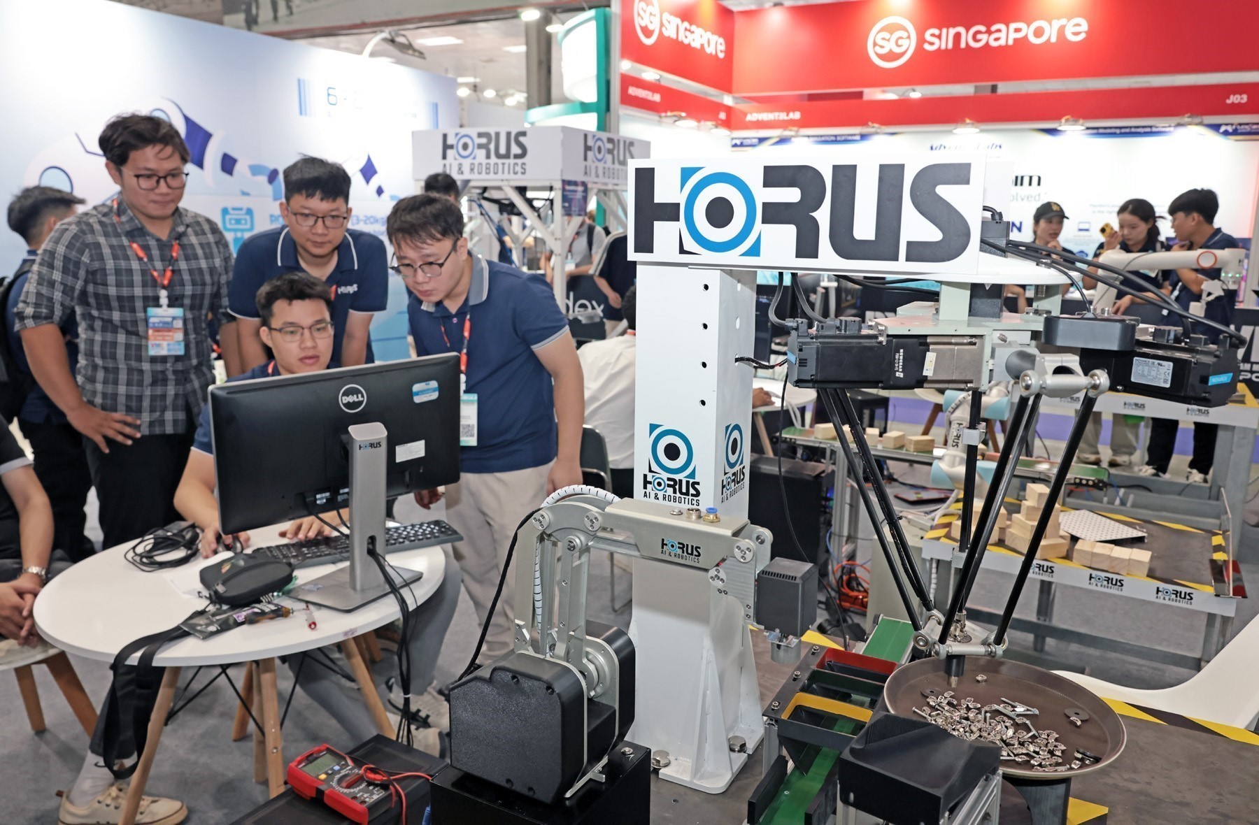 Gian trưng bày máy phân loại vật liệu của nhãn hiệu Horus AI Việt Nam tại Trung tâm triển lãm quốc tế (I.C.E), 91 Trần Hưng Đạo, Hà Nội. Ảnh: Trần Việt/TTXVN