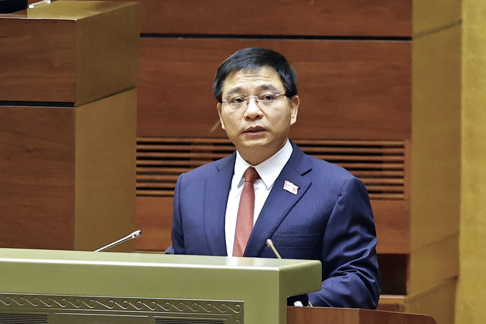 Tại phiên họp, thừa ủy quyền của Thủ tướng Chính phủ, Bộ trưởng Bộ Xây dựng Trần Hồng Minh trình bày Tờ trình về việc điều chỉnh nội dung Nghị quyết số 94/2015/QH13 của Quốc hội về chủ trương đầu tư Cảng hàng không quốc tế Long Thành.