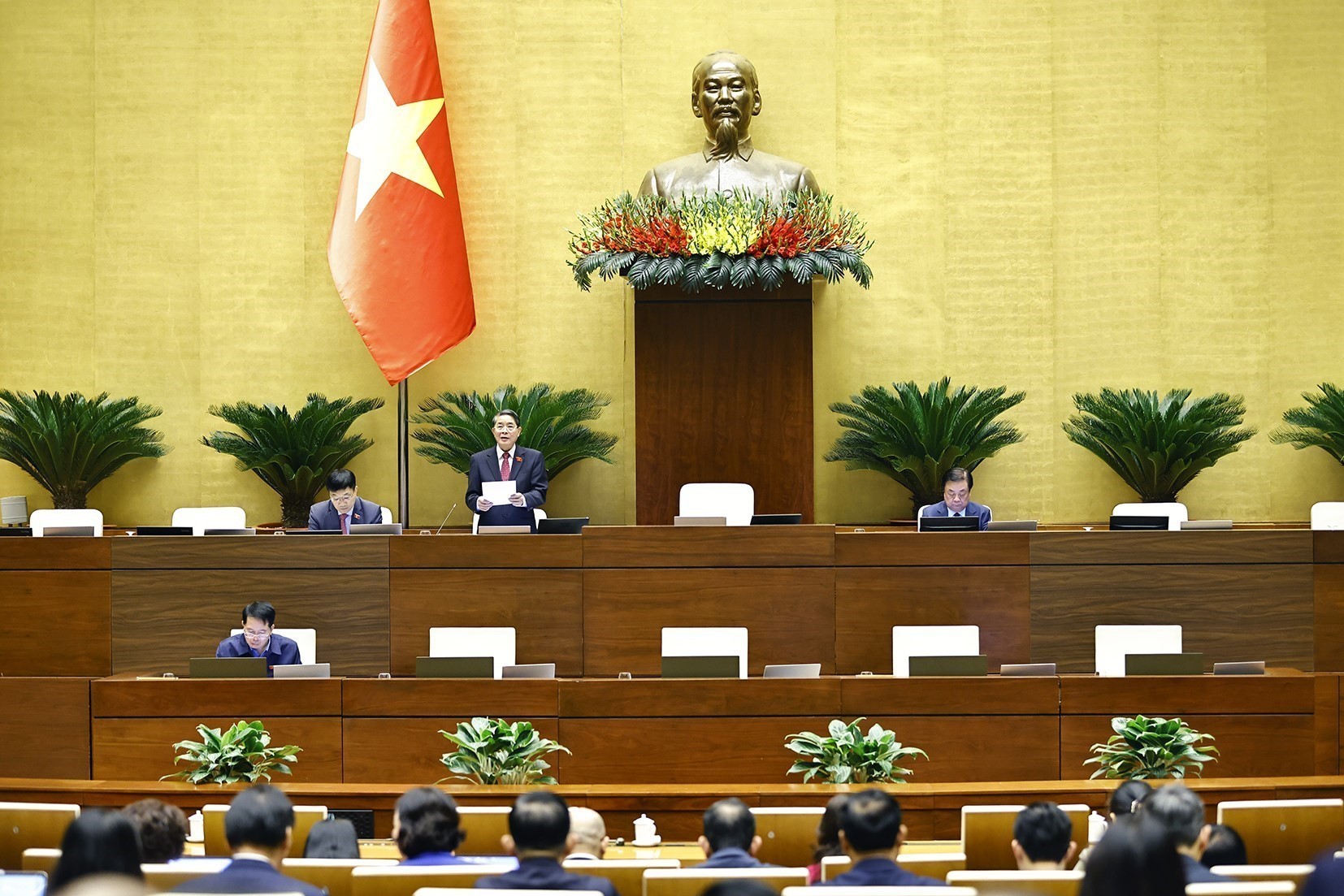 Sáng 8/12, Quốc hội nghe Tờ trình và báo cáo thẩm tra về: việc điều chỉnh nội dung Nghị quyết số 94/2015/QH13 của Quốc hội về chủ trương đầu tư Cảng hàng không quốc tế Long Thành; dự án Luật sửa đổi, bổ sung một số điều của Luật Thuế giá trị gia tăng; dự thảo Nghị quyết của Quốc hội về những cơ chế, chính sách đặc thù để triển khai các dự án lớn tại địa bàn Thủ đô; việc sửa đổi, bổ sung Nghị quyết số 170/2024/QH15 ngày 30/11/2024 của Quốc hội về cơ chế, chính sách đặc thù để tháo gỡ khó khăn, vướng mắc đối với các dự án, đất đai trong kết luận thanh tra, kiểm tra, bản án tại Thành phố Hồ Chí Minh, thành phố Đà Nẵng và tỉnh Khánh Hòa.