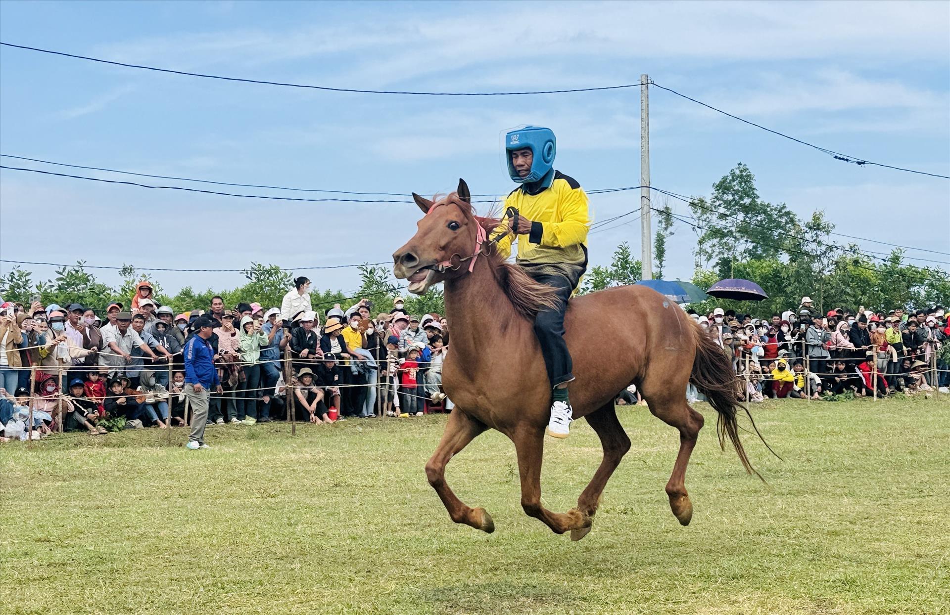 Hội đua ngựa năm nay có sự tham gia của 16 kỵ mã đến từ 16 thôn của xã Tuy An Tây. Các kỵ mã thi đấu 4 vòng, mỗi vòng có 4 kỵ mã tham gia đường đua dài 2km. Sau đó, 4 kỵ mã xuất sắc sẽ tham gia vòng chung kết tranh giải Nhất, giải Nhì và đồng giải Ba. Các kỵ mã tham gia tranh tài đã thể hiện những màn rượt đuổi gây cấn, hấp dẫn, nỗ lực trên từng chặng đường đua để đạt được kết quả cao nhất.
