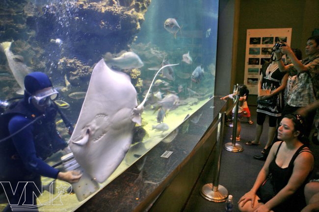 Ngắm cá đuối trong lòng Thủy cung Vinpearl.
