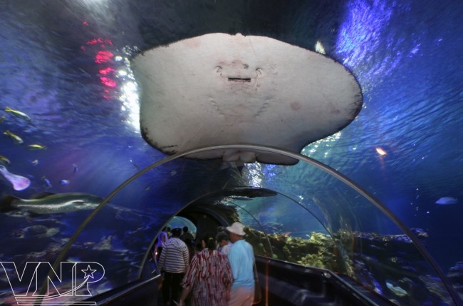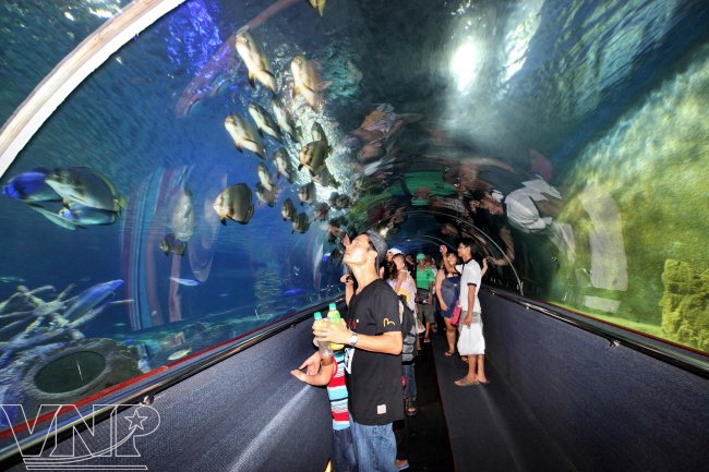 Đường hầm hiện đại, được thiết kế công phu, du khách chỉ ngẩng mặt lên đã thấy cá tung tăng bơi lội.