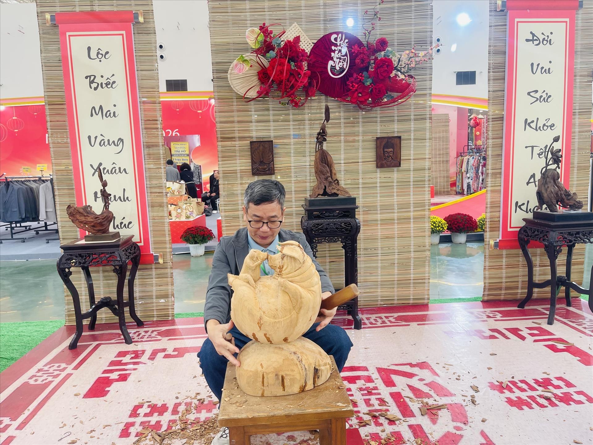 Không dừng lại ở việc trưng bày sản phẩm, nghệ nhân Phạm Văn Vững còn trực tiếp cầm đục, cầm dùi, trình diễn những đường chạm tinh xảo ngay tại gian hàng. Nhiều khách tham quan say mê đứng xem, có người hào hứng đề nghị được thử đục tượng gỗ, để trải nghiệm từng nhịp đục của người thợ. Nghệ nhân Phạm Văn Vững chia sẻ, việc đưa nghề truyền thống đến với không gian hội chợ vừa để giới thiệu và bán sản phẩm, cũng vừa để “nuôi dưỡng” tình yêu nghề và gieo mầm đam mê cho thế hệ trẻ.