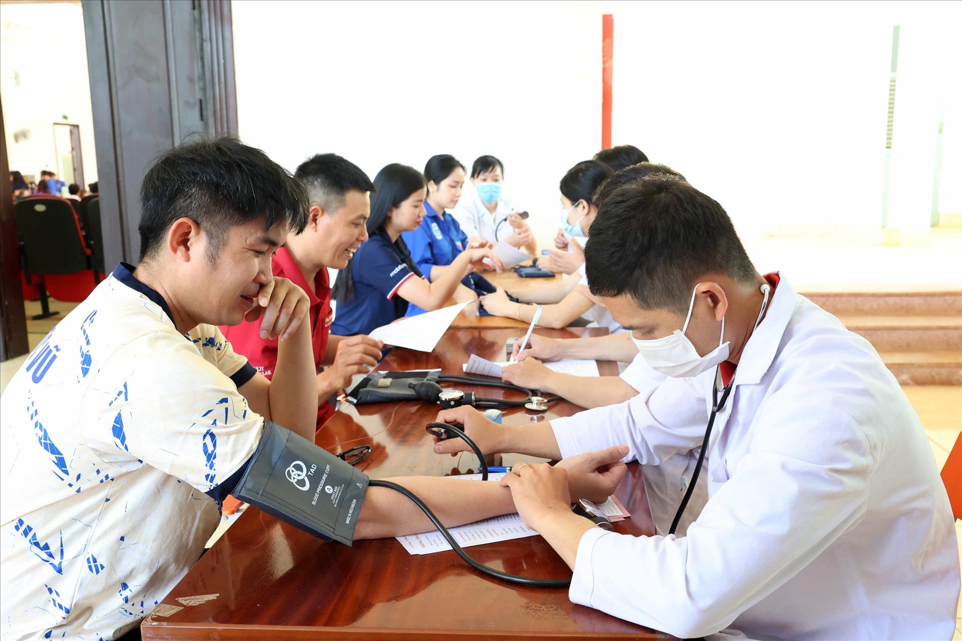 Cán bộ, viên chức, người lao động, đoàn viên, thanh niên, sinh viên đăng ký hiến máu. Ảnh: Hoài Thu – TTXVN
