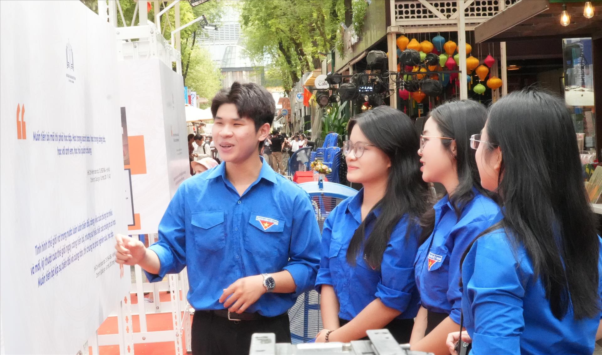 Không gian Triển lãm “Chủ tịch Hồ Chí Minh với văn hóa đọc” thu hút nhiều bạn trẻ tham quan. Ảnh: Hữu Duyên - TTXVN