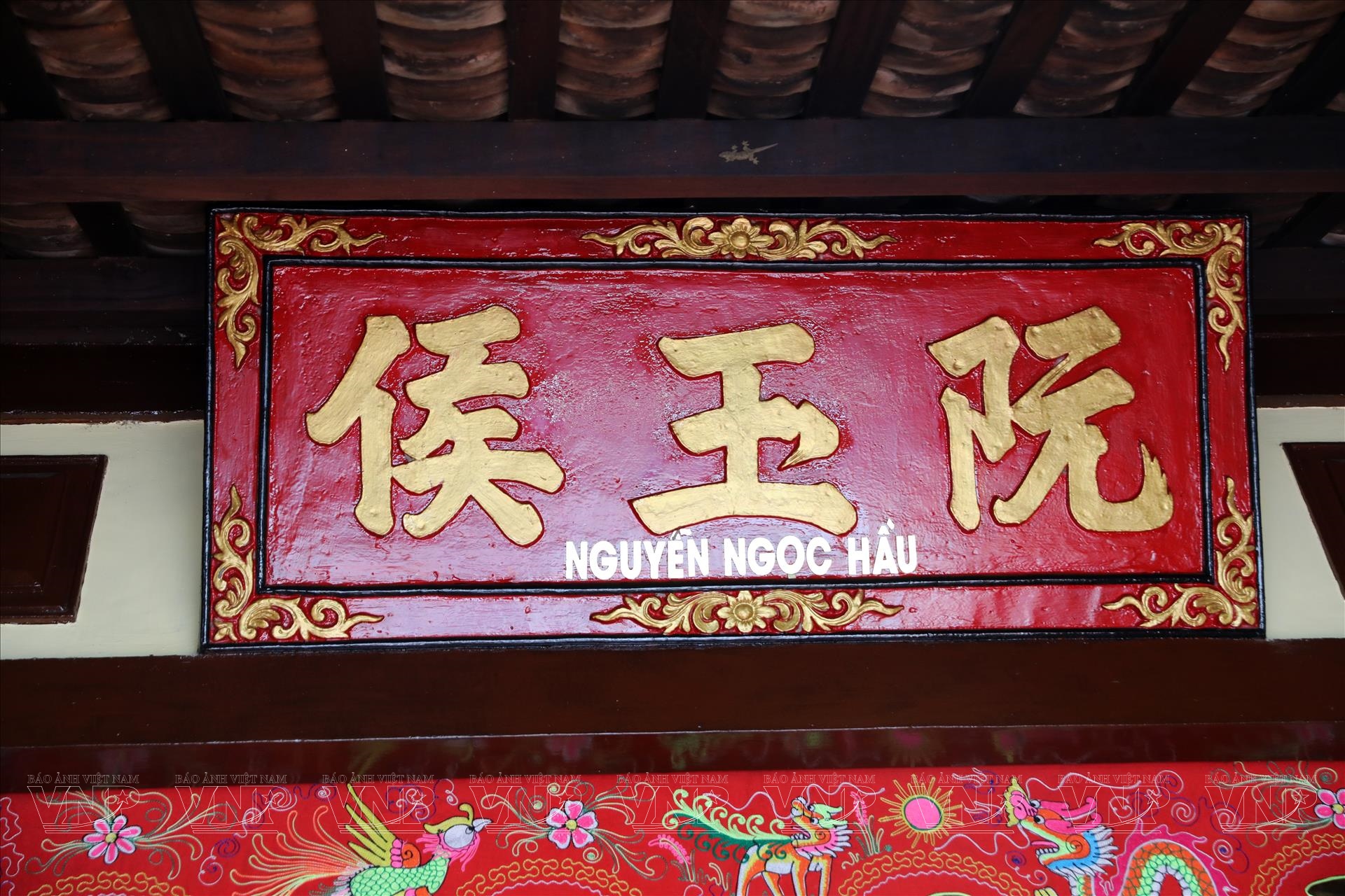 Bức hoành phi ghi danh Thoại Ngọc Hầu treo ở vị trí trung tâm gian thờ, thể hiện sự tôn kính của hậu thế đối với vị danh thần triều Nguyễn.