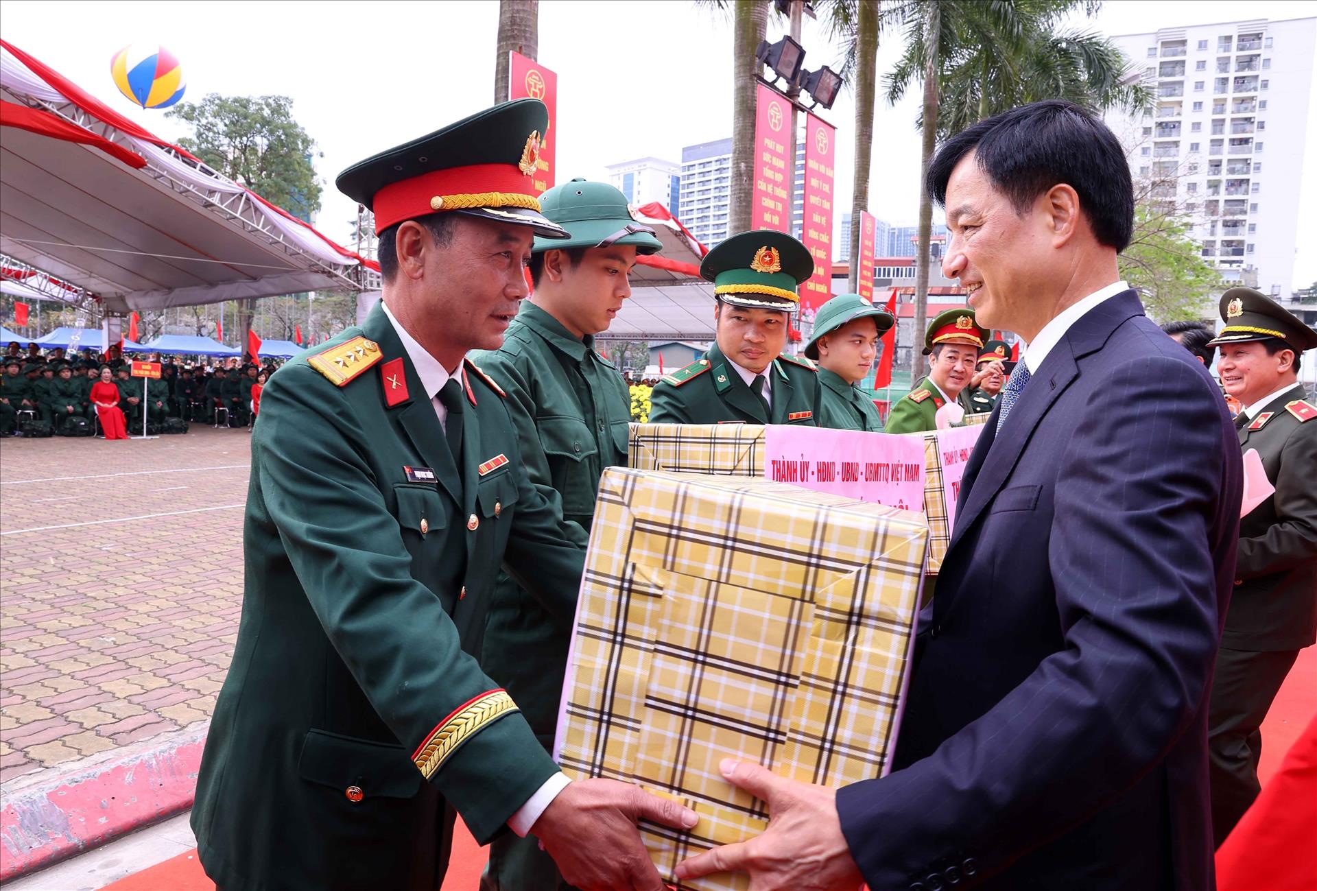 Tại Điểm giao nhận quân số 7 (Nhà Văn hóa Thanh Trì), Ban Chỉ huy Phòng thủ khu vực 5 - Thanh Oai (Hà Nội), Chủ tịch UBND thành phố, Chủ tịch Hội đồng nghĩa vụ quân sự thành phố Hà Nội Vũ Đại Thắng đã tới dự Lễ giao, nhận quân năm 2026 và động viên các công dân lên đường thực hiện nghĩa vụ quân sự, công an nhân dân.