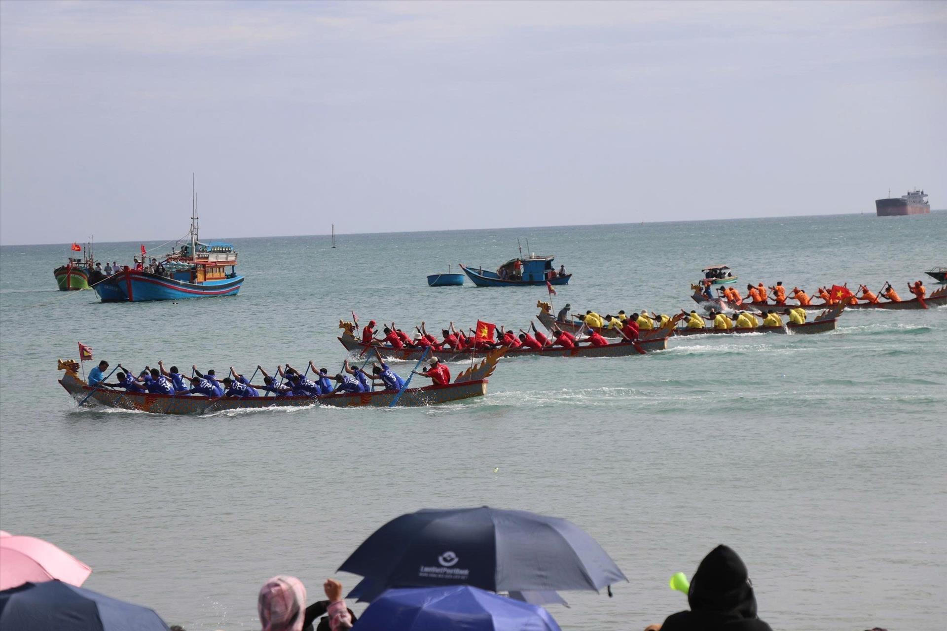 Đúng 15 giờ chiều, sau hồi trống lệnh vang lên, các tay chèo của các đội đua đồng loạt đưa thuyền rồng vượt sóng, tạo nên những màn bám đuổi nghẹt thở, bứt tốc kịch tính trên đường đua xanh. Sự nỗ lực của các tay chèo càng thể hiện rõ trong tiếng hò reo, cổ vũ nhiệt thành của đông đảo ngư dân và du khách.