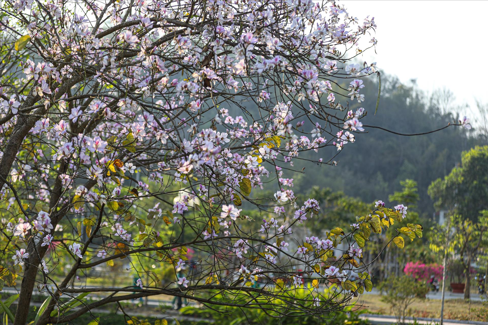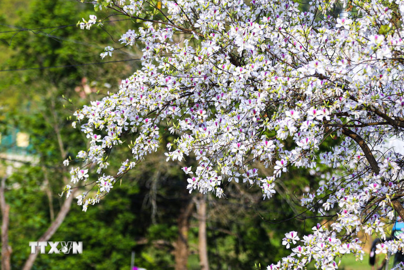 Hoa ban bung nở trên khắp các phố phường thành phố Điện Biên Phủ. Ảnh: Phan Quân - TTXVN
