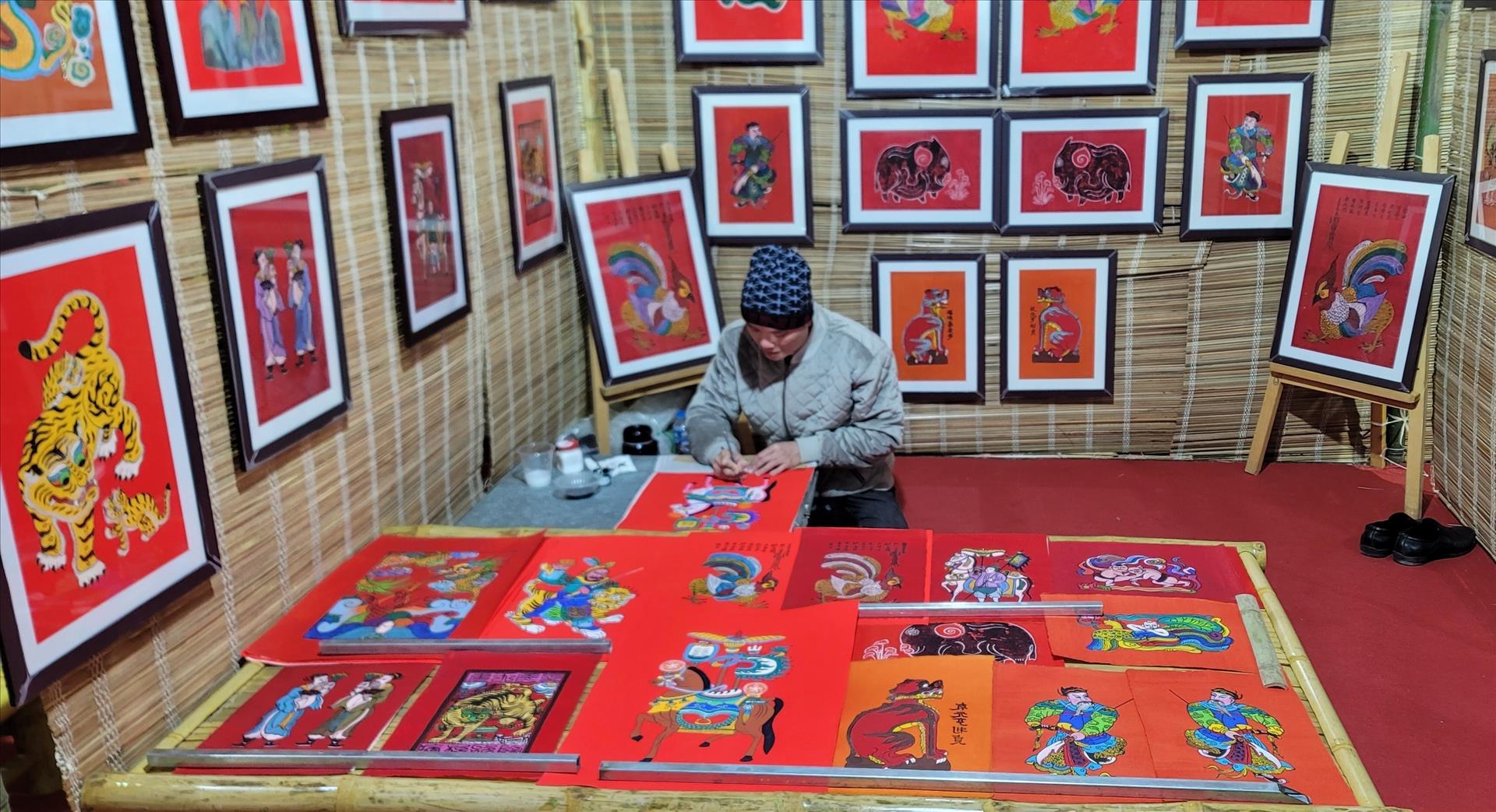 Trình diễn nghề làm tranh Đông Hồ tại Lễ hội hoa đào, quất cảnh và sản phẩm OCOP các vùng miền Xuân Giáp Thìn 2024. Ảnh: Phương Anh-TTXVN