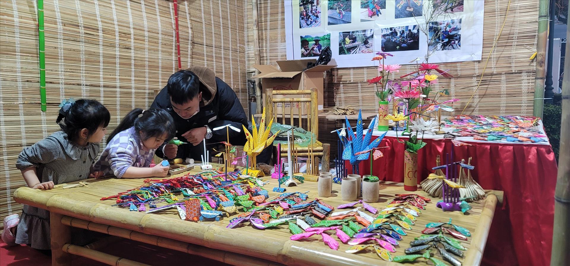 Trình diễn nghề làm chuồn chuần tre tại Lễ hội hoa đào, quất cảnh và sản phẩm OCOP các vùng miền Xuân Giáp Thìn 2024. Ảnh: Phương Anh-TTXVN
