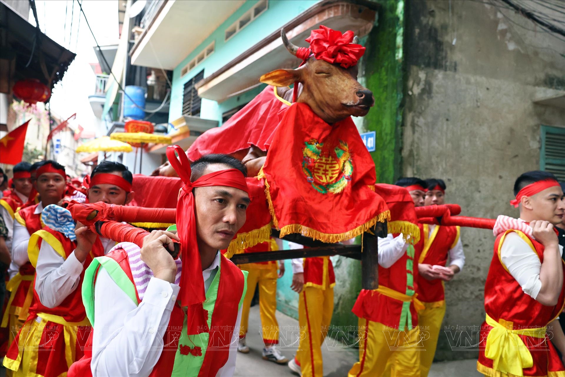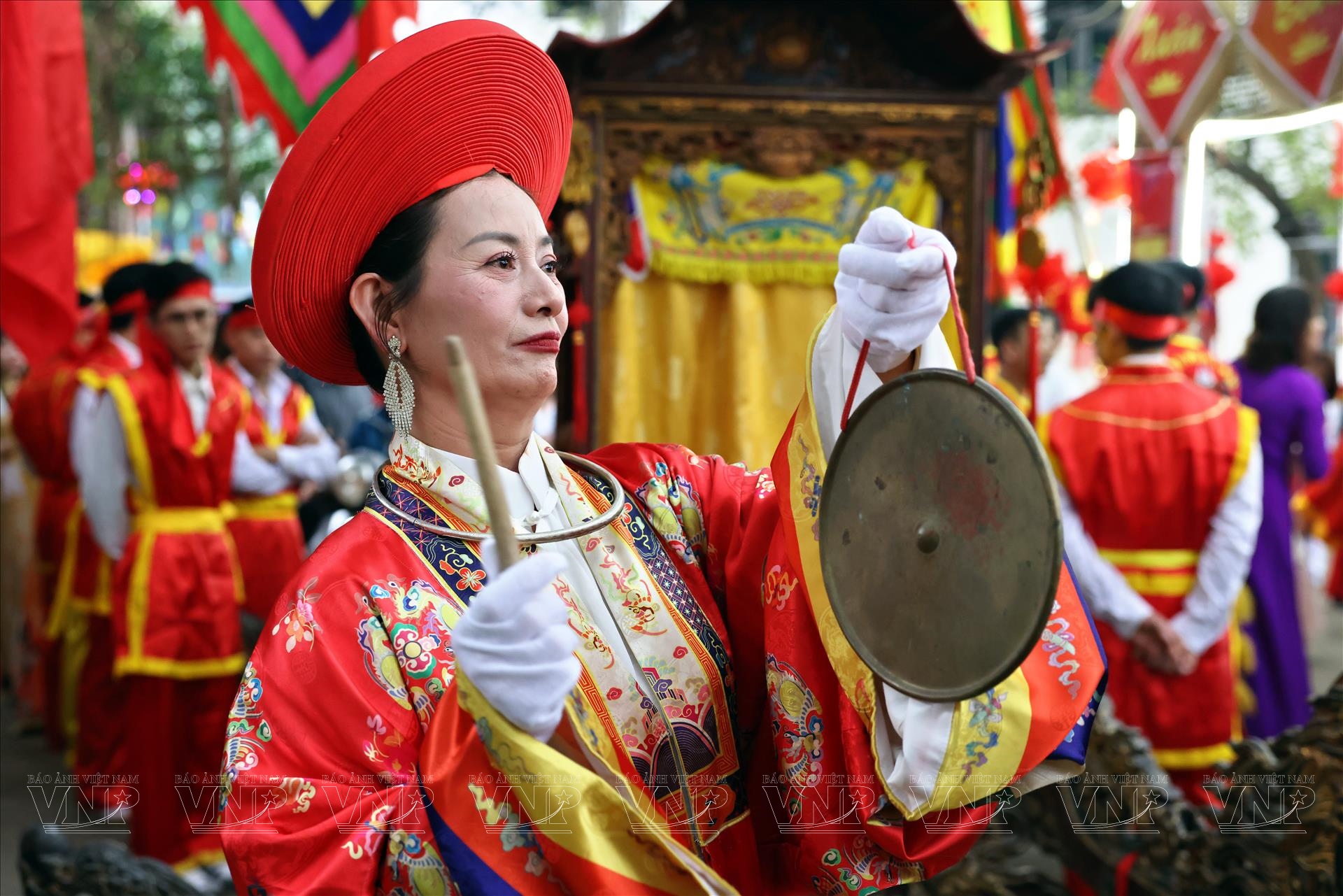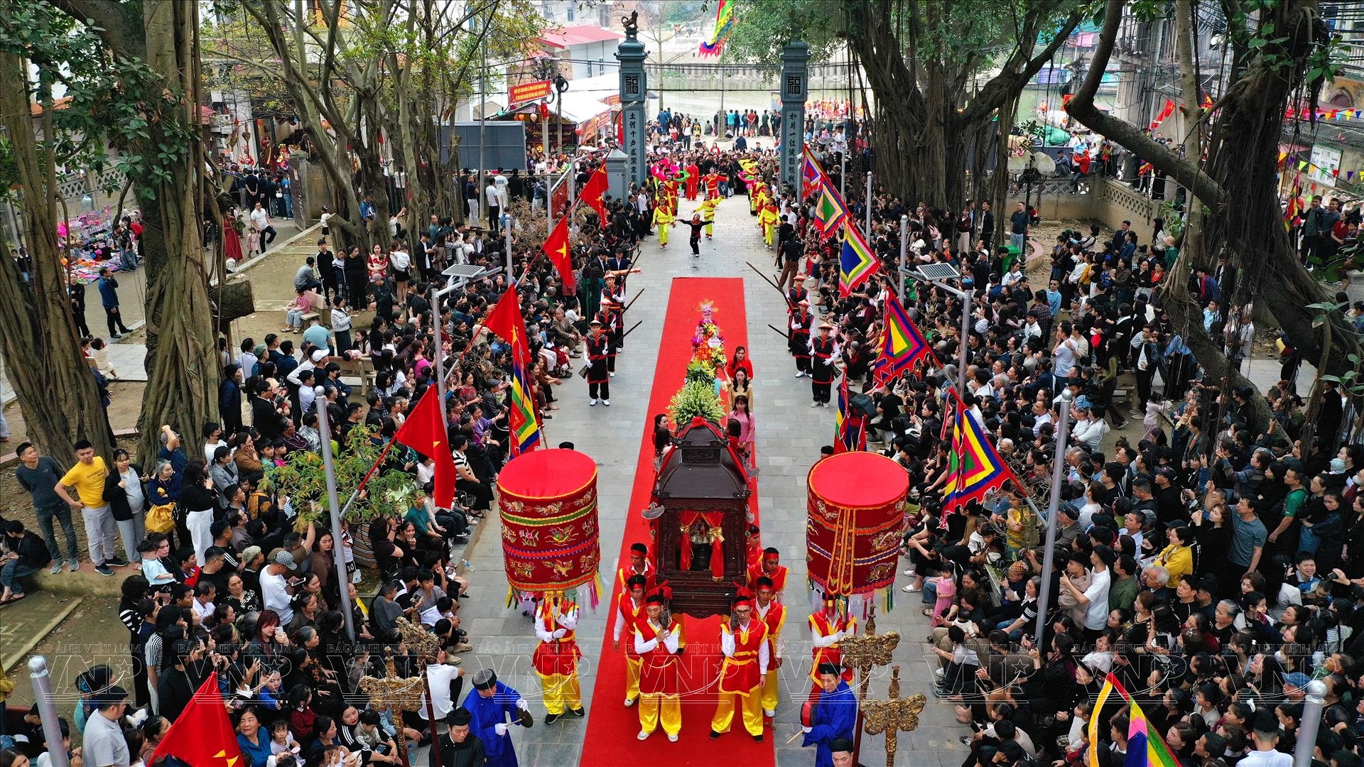 Ngay từ sáng sớm, không gian quanh Đình Thổ Hà đã rực rỡ cờ hội, cờ ngũ sắc và dòng người trẩy hội tấp nập. Tiếng trống hội vang lên từng hồi giục giã, hòa cùng tiếng nói cười rộn ràng tạo nên bầu không khí xuân náo nức. Người dân trong làng diện trang phục truyền thống, chuẩn bị cho các nghi thức rước kiệu và tế lễ - những nghi lễ quan trọng nhất của lễ hội.
