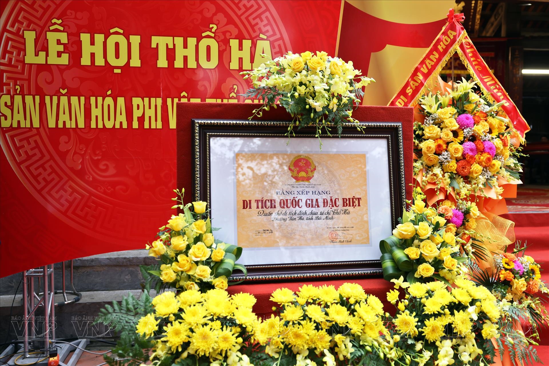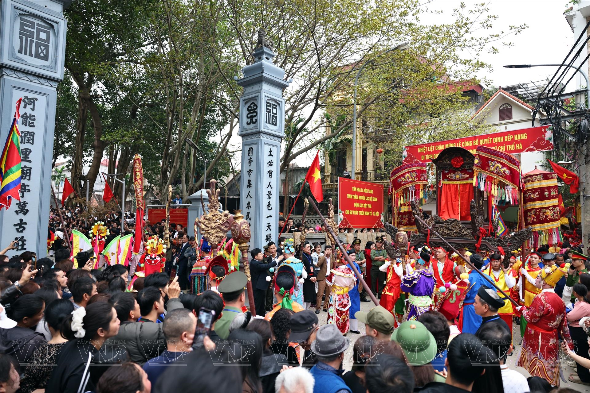 Sau nghi lễ rước truyền thống, người dân và đại biểu tham dự tiếp tục tập trung tại sân đình để dự lễ công bố quyết định và đón nhận Bằng xếp hạng Di tích Quốc gia đặc biệt đối với quần thể di tích đình, chùa, từ chỉ Thổ Hà. Đây là sự kiện có ý nghĩa đặc biệt đối với địa phương, ghi nhận giá trị lịch sử, kiến trúc và văn hóa lâu đời của hệ thống di tích này.