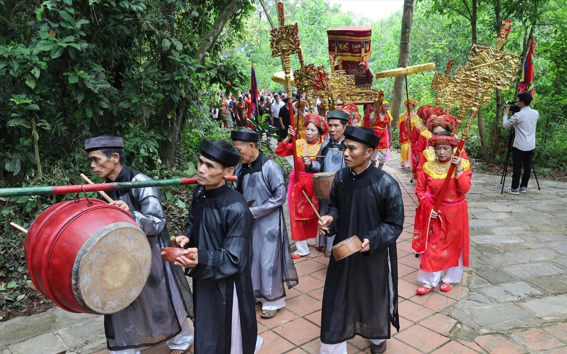 Thực hiện nghị lễ rước kiệu tại lễ hội. Ảnh: Đức Phương - TTXVN