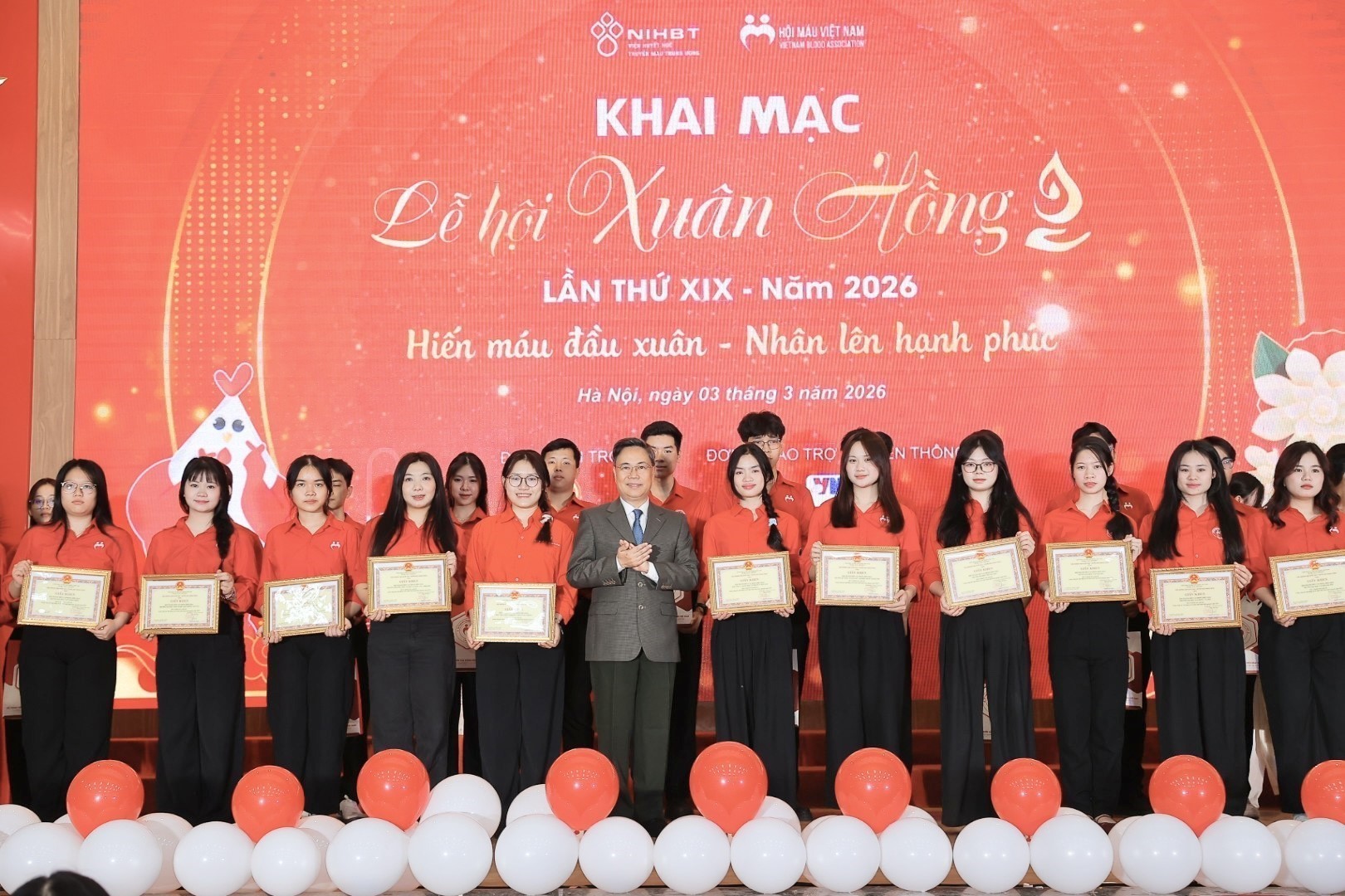 Chiều 3/3, tại Hà Nội, Viện Huyết học - Truyền máu Trung ương phối hợp cùng Hội Thanh niên Vận động hiến máu Việt Nam tổ chức khai mạc Lễ hội Xuân hồng lần thứ XIX năm 2026. Sự kiện diễn ra trong 10 ngày liên tục, từ ngày 27/2 đến 8/3 tại nhiều địa điểm trên địa bàn Thủ đô Hà Nội, với mục tiêu tiếp nhận 10.000 đơn vị máu.