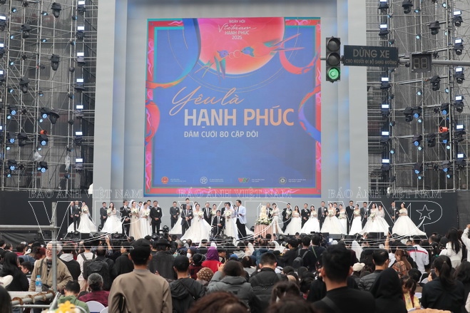 Ngay sau Lễ Khai mạc, một sự kiện cộng đồng ý nghĩa đã diễn ra: Lễ cưới tập thể của 80 cặp đôi. Lễ cưới này không chỉ là lời chúc phúc cho các đôi uyên ương mà còn là biểu tượng cho hành trình 80 năm Độc lập – Tự do – Hạnh phúc của đất nước, lan tỏa hình ảnh một Việt Nam nhân ái, gắn kết và giàu giá trị cộng đồng.