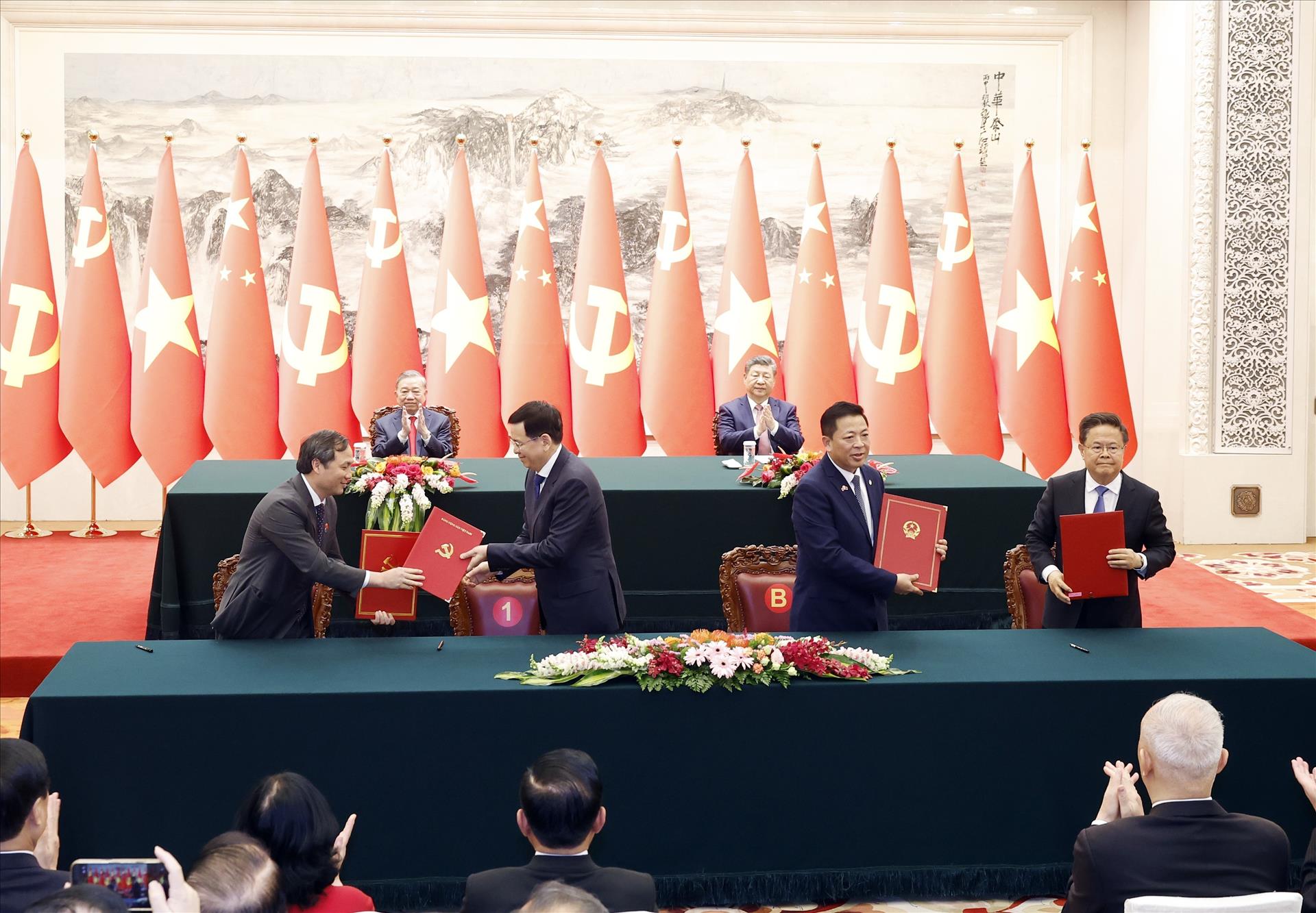 Tổng Bí thư, Chủ tịch nước Tô Lâm và Tổng Bí thư, Chủ tịch Trung Quốc Tập Cận Bình đã chứng kiến Lễ ký các văn kiện hợp tác tiêu biểu giữa các bộ, ngành, địa phương hai nước.