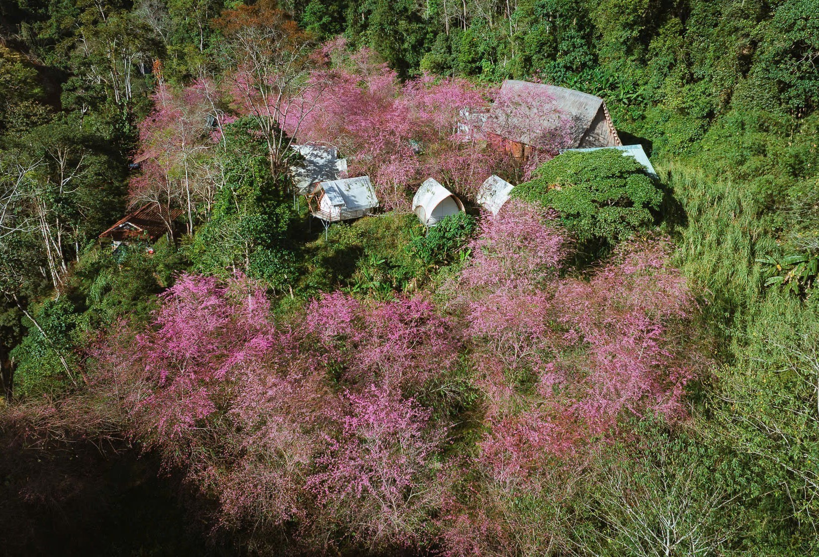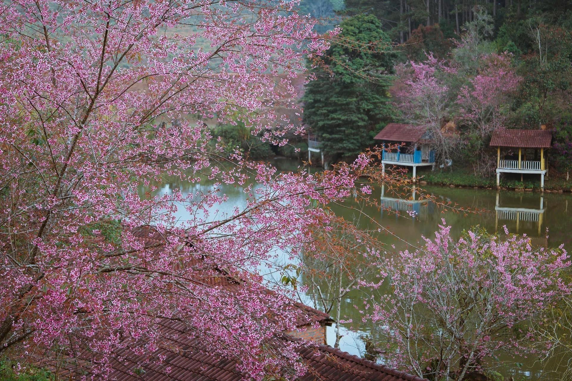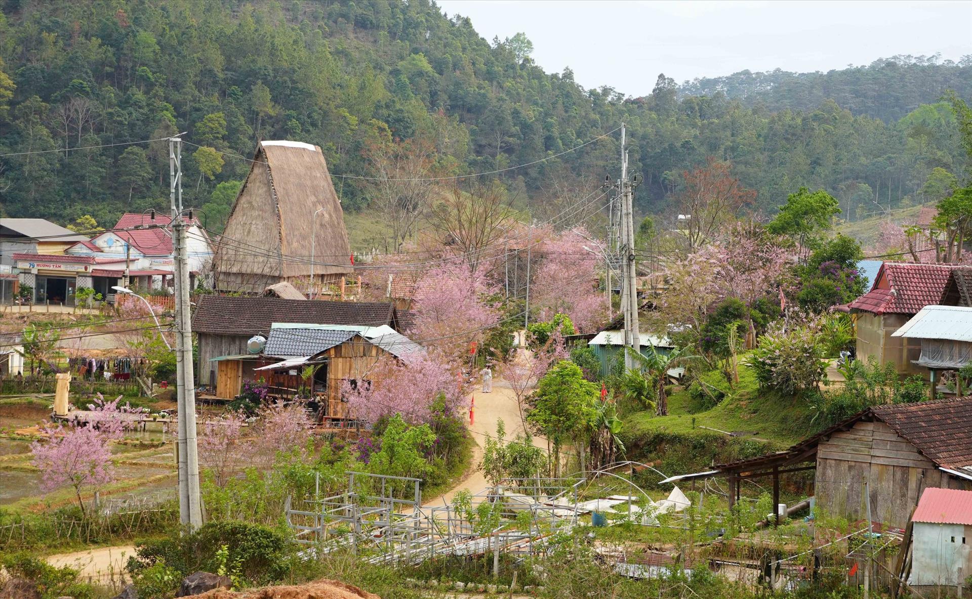 Mai Anh Đào nở rộ, tạo cảnh quan cho làng du lịch cộng đồng Kon Bring, xã Măng Đen. Ảnh: Dư Toán/TTXVN