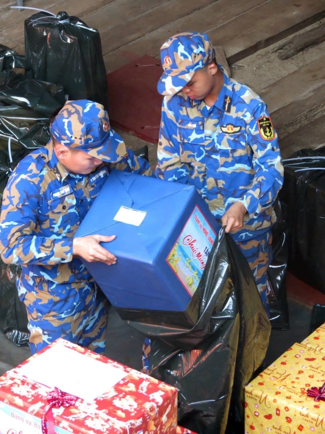 Vận chuyển quà Tết lên tàu. Ảnh: Đoàn Mạnh Dương-TTXVN
