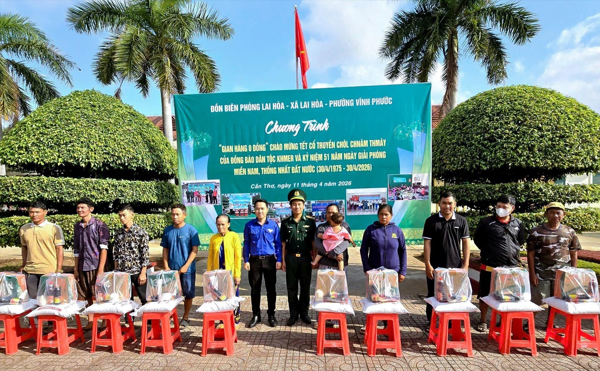 Cụ thể, sáng 11/4, Đồn Biên phòng Lai Hòa vừa phối hợp với Hội Liên hiệp Phụ nữ, Đoàn Thanh niên xã Lai Hòa và phường Vĩnh Phước tổ chức chương trình “Gian hàng 0 đồng” lần thứ 11. Hoạt động này nhằm trao tặng quà cho các hộ có hoàn cảnh khó khăn nhân dịp Tết cổ truyền Chôl Chnăm Thmây của đồng bào Khmer năm 2026, đồng thời hướng tới kỷ niệm 51 năm Ngày giải phóng miền Nam, thống nhất đất nước.