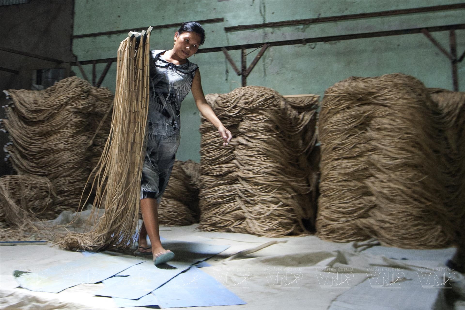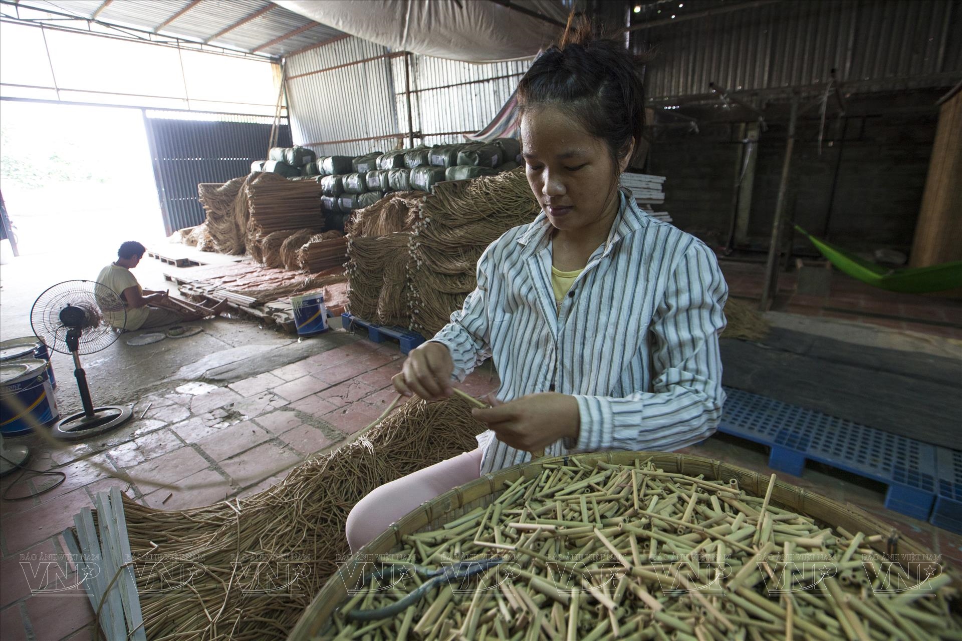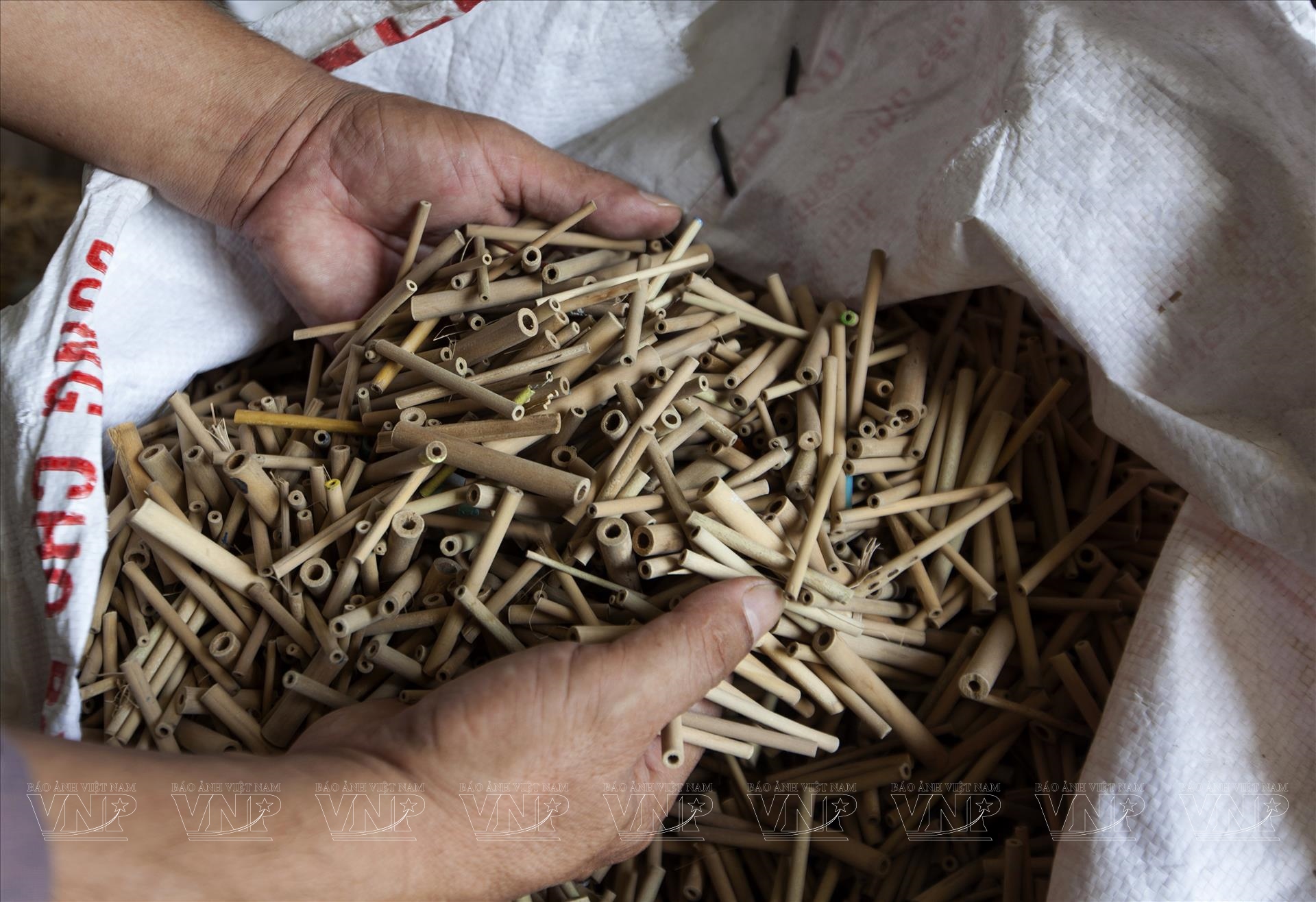 Những ống trúc khô đã qua xử lý sẽ được xâu lại với nhau bằng những sợi dây kẽm.
