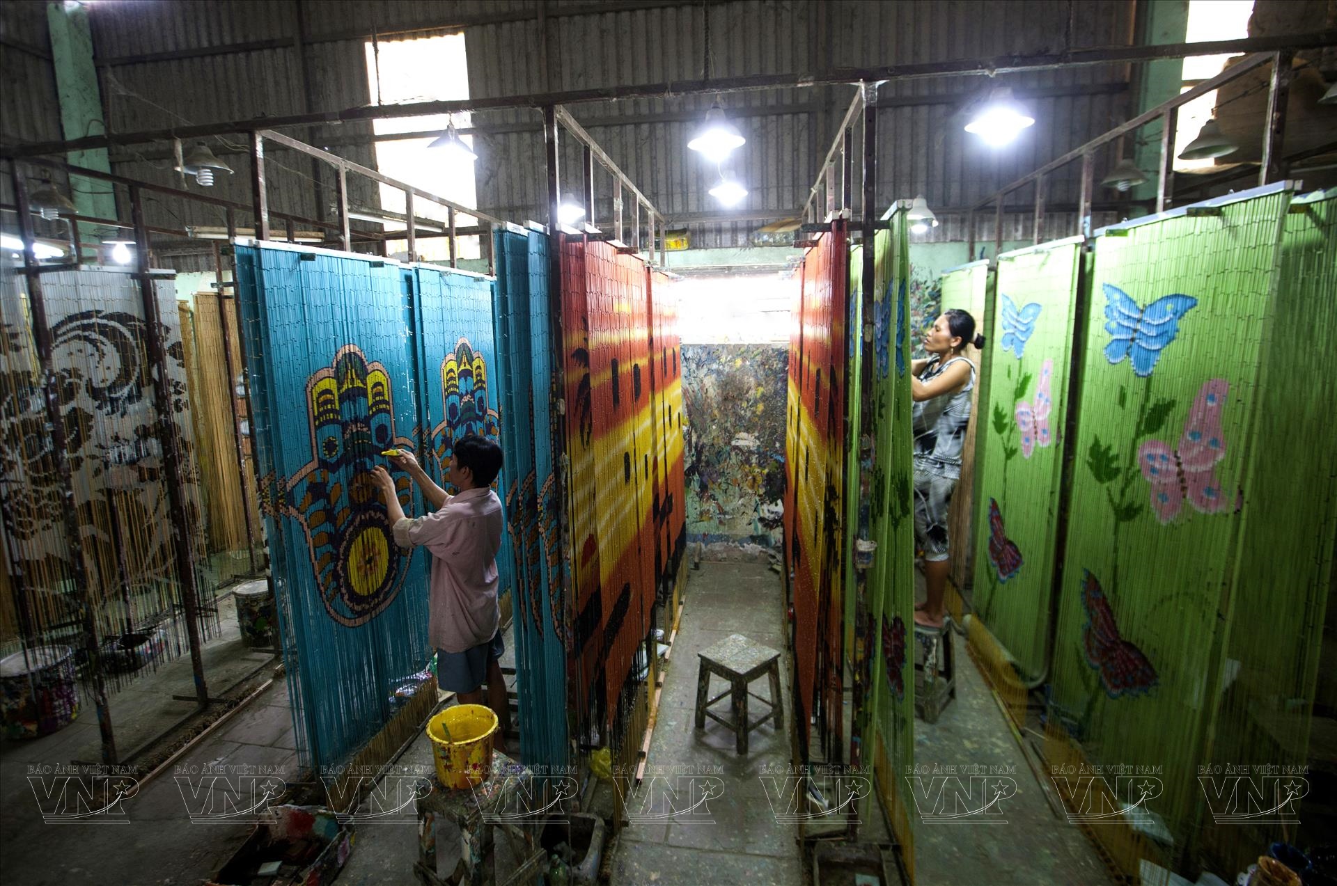 Vẽ họa tiết, hoa văn cho mành trúc là công đoạn đòi hỏi sự tỉ mỉ, cẩn thận của những người thợ.