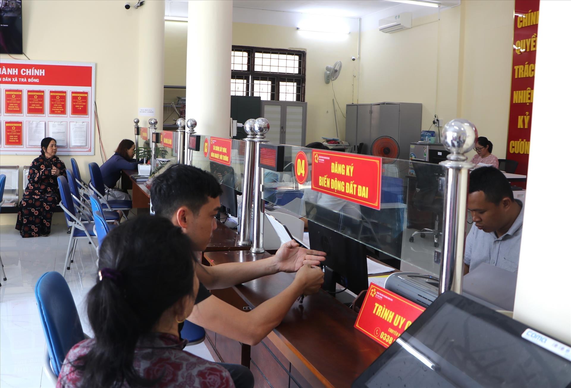 Cán bộ tại Trung tâm hành chính công xã Trà Bồng nỗ lực rút ngắn thời gian giải quyết hồ sơ, lấy sự hài lòng của người dân làm thức đo. Ảnh: Đinh Hương - TTXVN